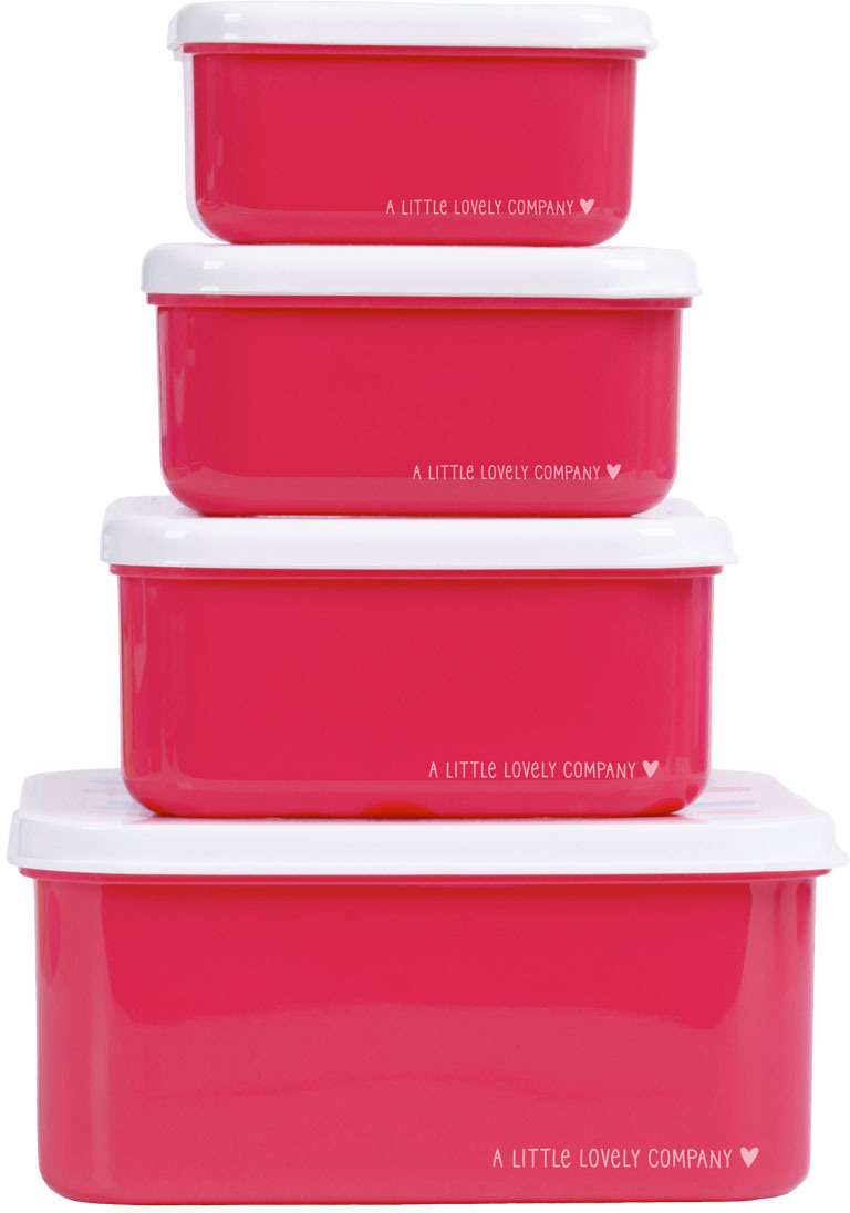 Set mit vier Lunch- und Snackboxen in verschiedenen Grössen und passenden Designs. Grossartig für die Schule, für unterwegs und ideal für die Aufbewahrung von Snacks zu Hause. Dank der Lasche an der Seite des Deckels lassen sie sich leicht öffnen und schliessen, und die Boxen lassen sich zur einfachen Aufbewahrung ineinander stapeln.