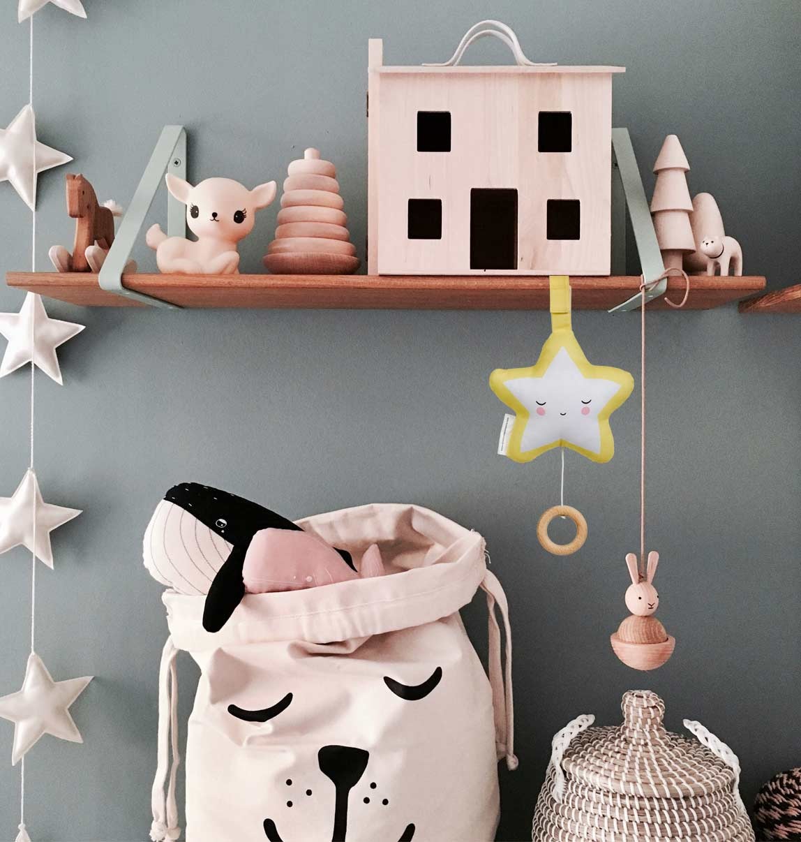 Dieses niedliche Musikmobile spielt ein liebliches Schlaflied, wenn man an der Kordel zieht und ist dank des praktischen Klettverschlusses ganz einfach aufzuhängen. Das Musikmobile ist aus 100% Baumwolle und einem Ring aus Buchenholz gefertigt. Lasse dein Kind ganz herrlich einschlafen, während es den Klängen von ‘Twinkle Twinkle Little Star’ lauschen kann. Die Melodie wird etwas ruhiger gespielt, sodass es einen besonders einschläfernden Effekt hat.