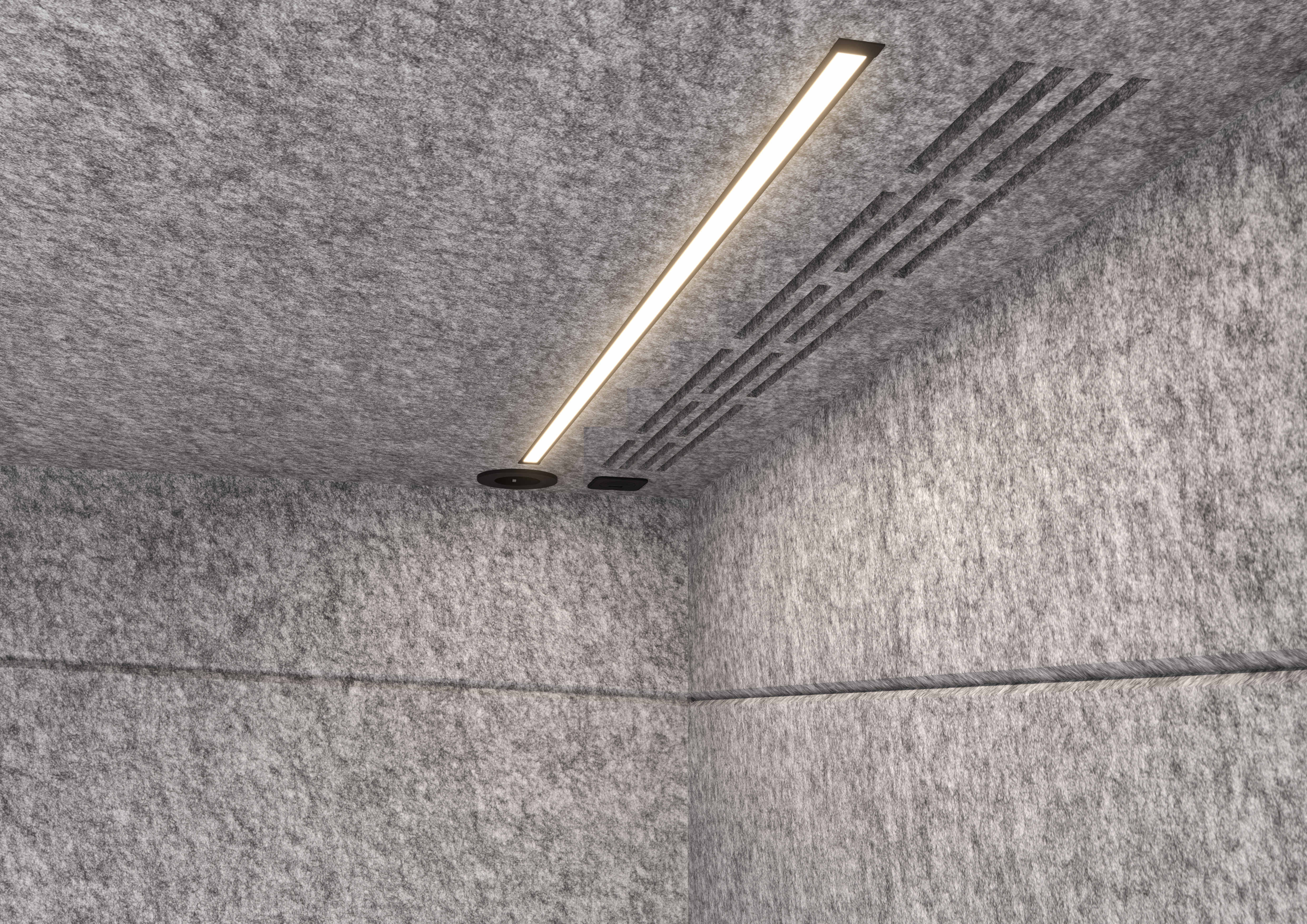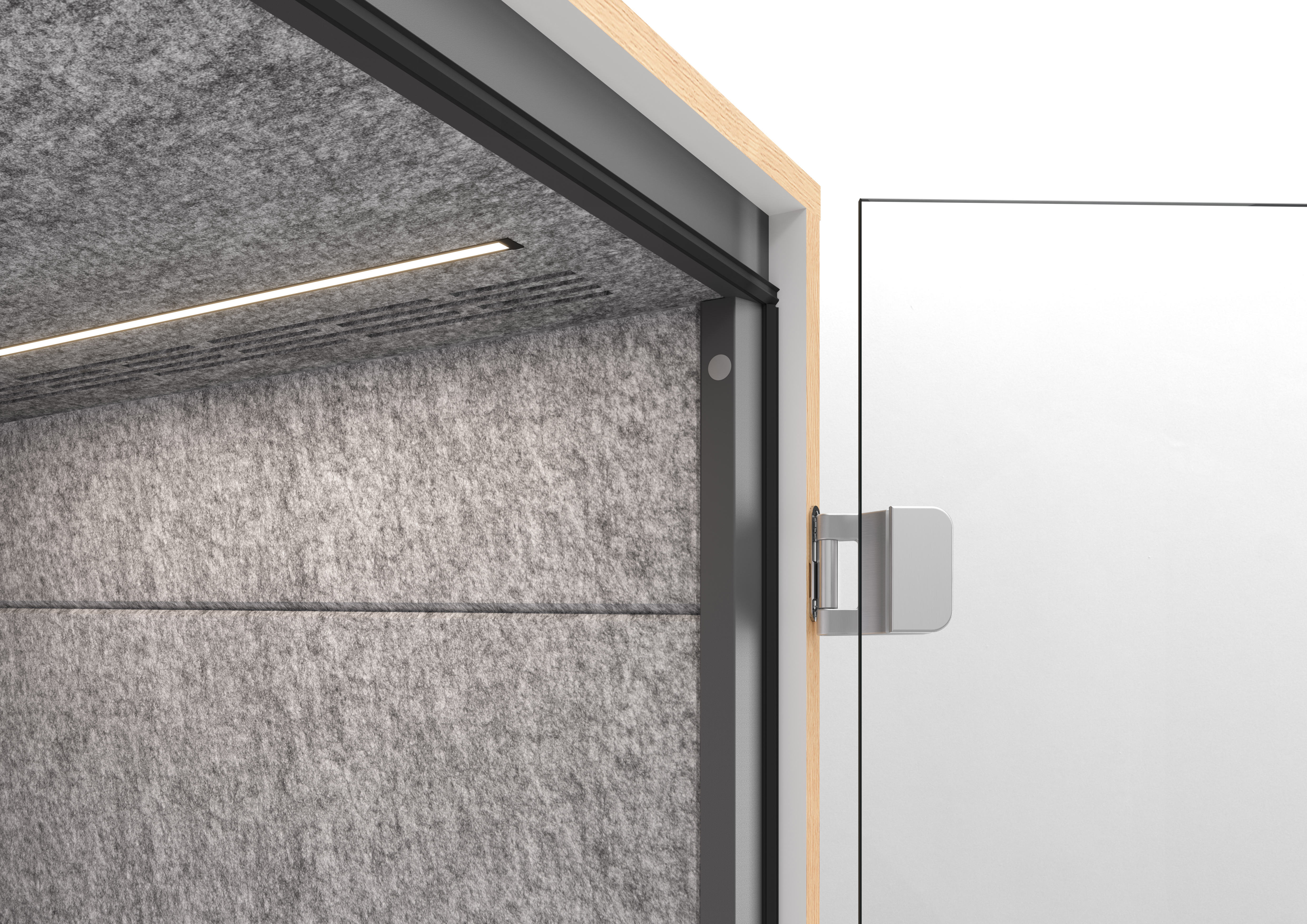 Die Raumlösung "Harmony" bietet eine ideale Lösung für ungestörtes Telefonieren und konzentriertes Arbeiten in offenen Büroumgebungen. Dank hochwertiger schalldämmender Materialien schafft sie eine angenehme Ruhezone, frei von störenden Geräuschen und Ablenkungen. Ideal geeignet für eine günstige und einfache Raum-in-Raum Lösungen. Die wände bestehen aush 25 - 50mm dicker melaminharzbeschichteter Spannplatten. Die Innenwände sind mit 30mm dickem Akustikvlies mit progressiver Dichte ausgestattet.