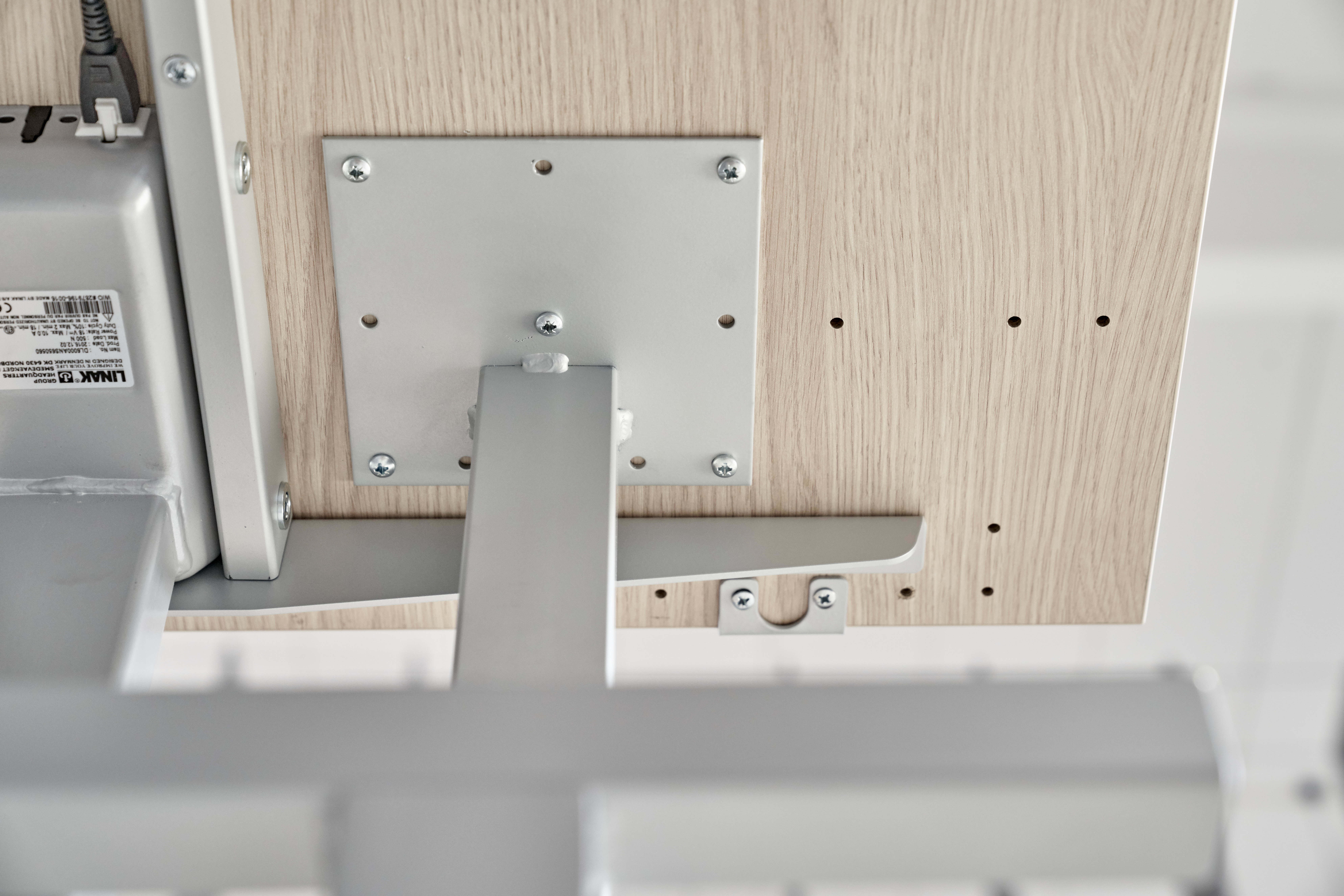 - Kann an beliebiger Stelle unter der Tischplatte geschraubt werden