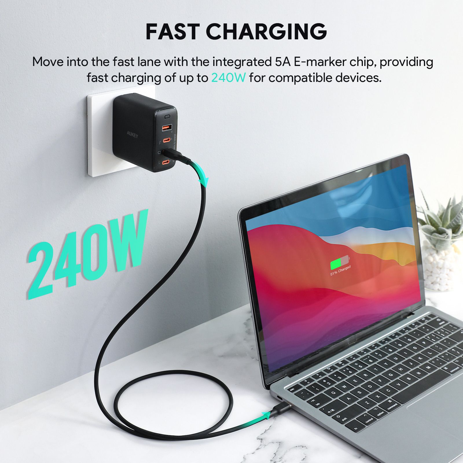 AUKEY Cable USB-C-to-C CB-SCC242 Silicone, 1.8m 240W