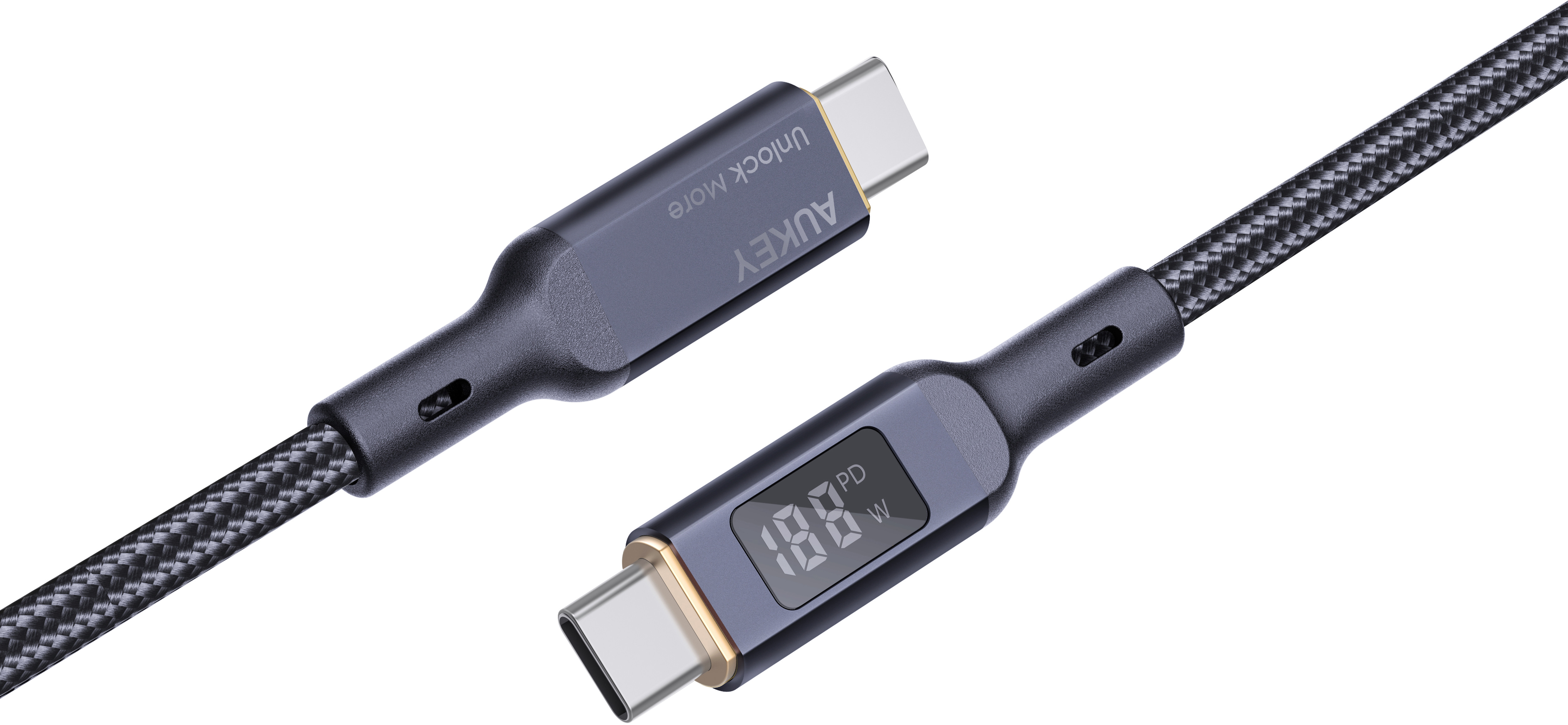 Ein brandneues Design AUKEY Circlet Serie Kabel. Ausgestattet mit einem digitalen Bildschirm zur Anzeige der Ladung in Prozent und ob die Schnellladung aktiviert ist. Verbesserte Haltbarkeit mit 20000 Biege-Lebensspanne. Datenübertragung bis zu 480Mbps.Flexibel genug mit geflochtenem Nylonmaterial.