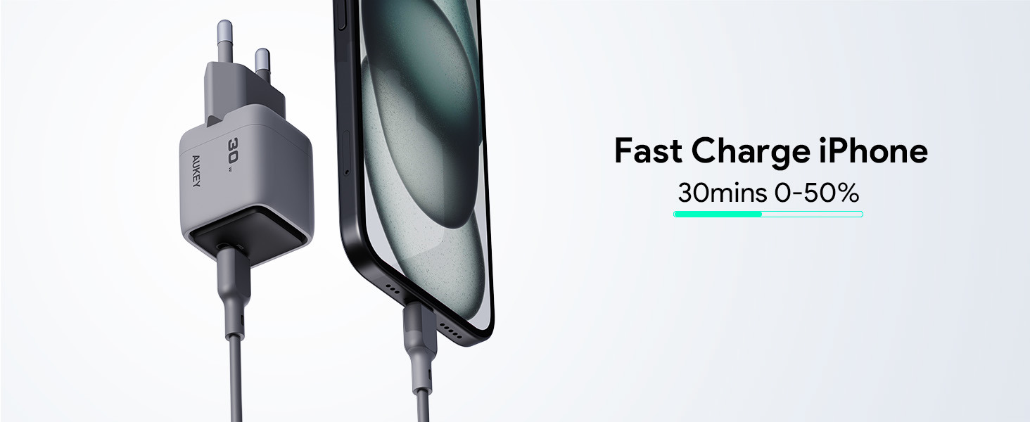 AUKEY Comet Mini 30W GaN PD PA-C1 1-Port, Wall Charger Grey