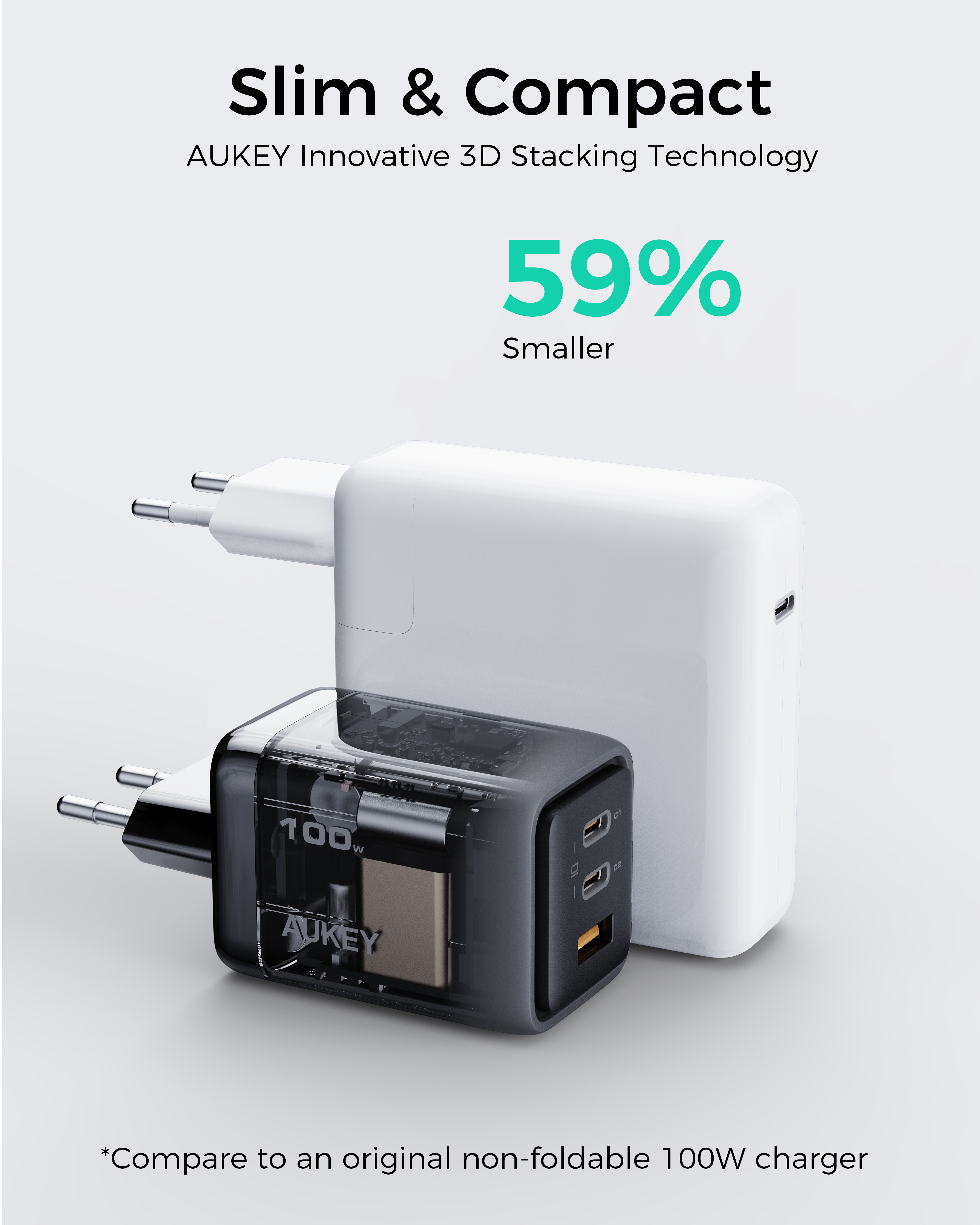 - Leistungsstarkes High-Speed-Laden mit drei Anschlüssen. Mit einer Gesamtleistung von bis zu 100 W sorgt das Ladegerät für ultraschnelles Laden und stellt sicher, dass Laptops, Tablets und Smartphones in kürzester Zeit aufgeladen sind. Die drei Anschlüsse ermöglichen das gleichzeitige Laden mehrerer Geräte, ohne die Ladegeschwindigkeit erheblich zu beeinträchtigen.