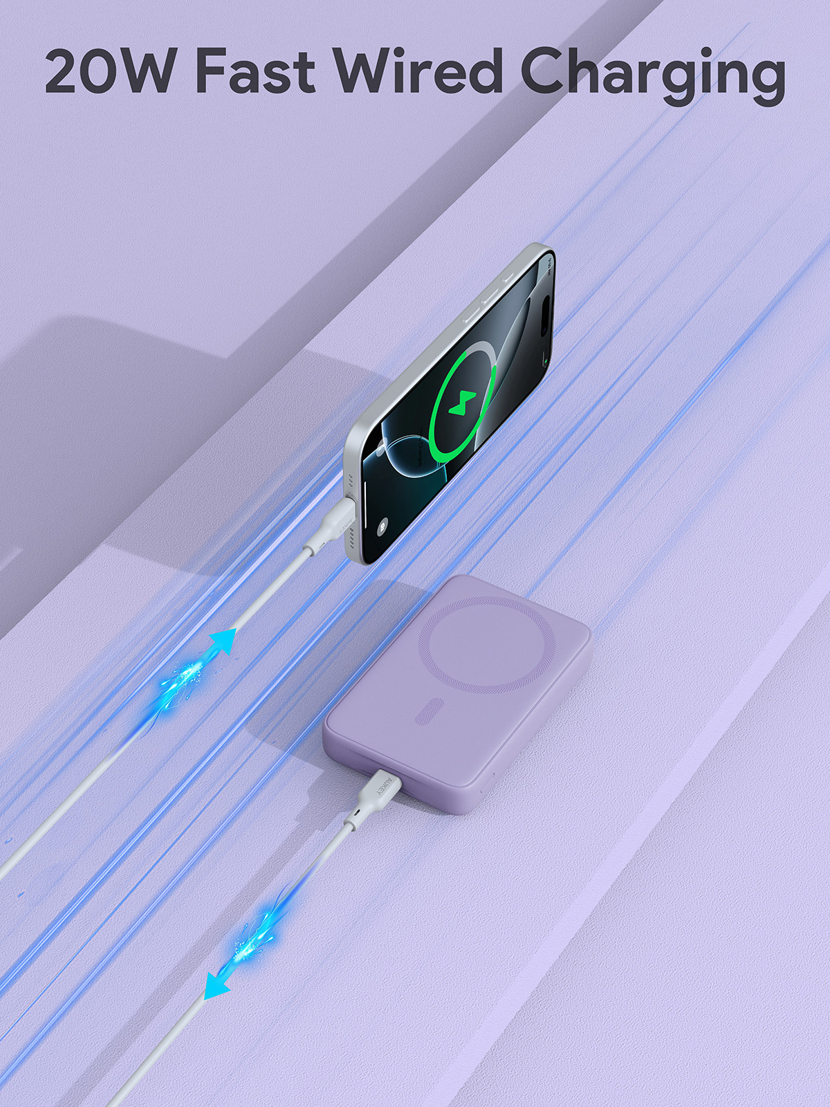 Slim20mmDesign:Schlank und tragbar, passt leicht in Taschen oder Beutel 7.5WMagSafeKompatibel: Bietet schnelles magnetisches kabelloses Laden für MagSafe-fähige Geräte. Schnelles kabelgebundenes Aufladen: 18 W Eingang und 20 W Ausgang über USB-C für schnelle der Powerbank.