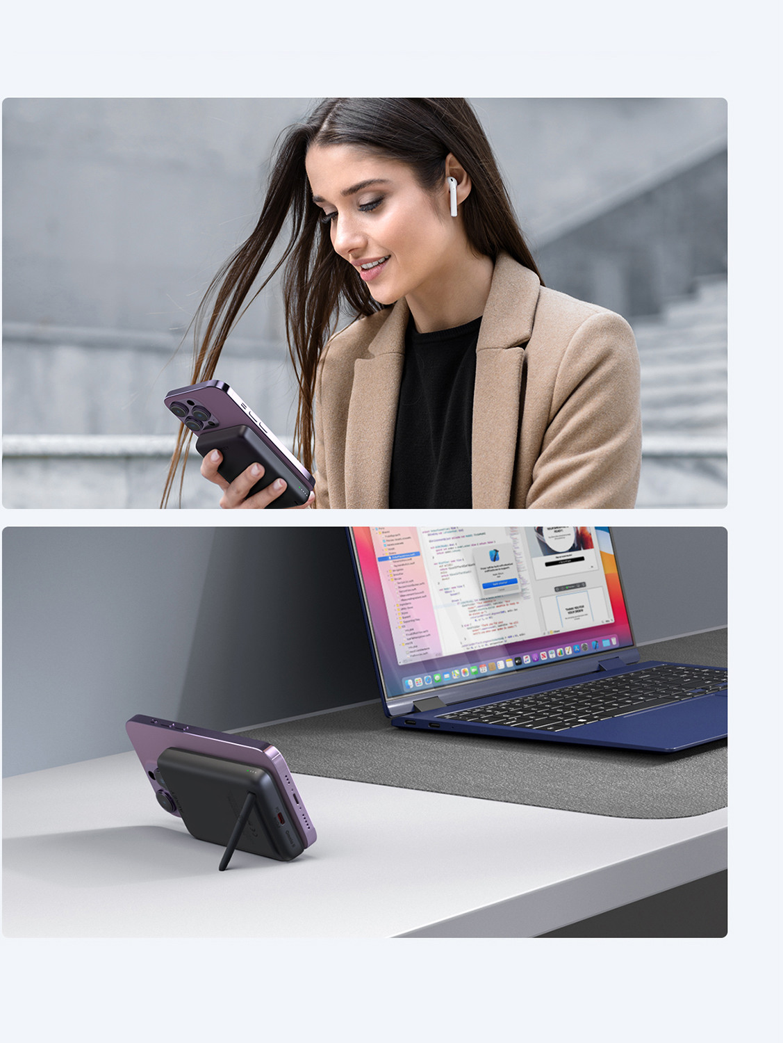 Kabelloses Aufladen mit maximal 15 W nach Qi2: Richtet sich auf starkes magnetisches Laden aus und bietet bis zu 15 W schnelle kabellose Ladegeschwindigkeit für iPhone 12 und neuere Modelle. Genießen Sie eine verwicklungsfreie und mühelose Ladeerfahrung ohne die Notwendigkeit für Kabel. 20W kabelgebundenes Schnellladen: Die leistungsstarke 20W PD-Schnellladefunktion sorgt für ein schnelles und effizientes Aufladen über den USB-C-Anschluss, minimiert Ausfallzeiten und hält Sie in Verbindung. Klappbarer Ständer: Mit dem integrierten, praktischen, klappbaren Ständer können Sie Ihr Gerät beim Aufladen in einem bequemen Winkel aufstellen - perfekt zum Anschauen von Filmen oder für Videotelefonate.