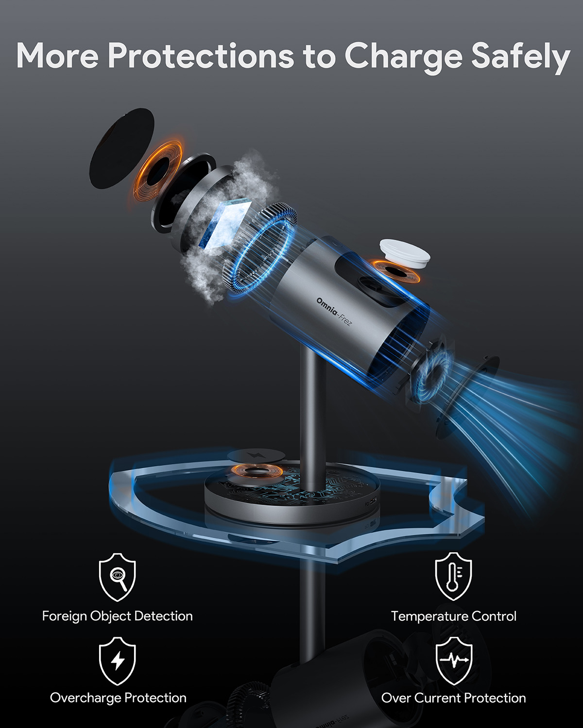 Lernen Sie das MagFusion 3-in-1 Pro kennen, ein kabelloses Ladegerät der Spitzenklasse für Apple-Geräte. Es bietet gleichzeitiges Laden für Ihr iPhone, Ihre AirPods und Ihre Apple Watch mit fortschrittlicher Omnia-Frez-Kühltechnologie, um Überhitzung zu vermeiden und die Lebensdauer des Geräts zu verlängern. Erleben Sie verbesserten Komfort und dauerhafte Leistung.