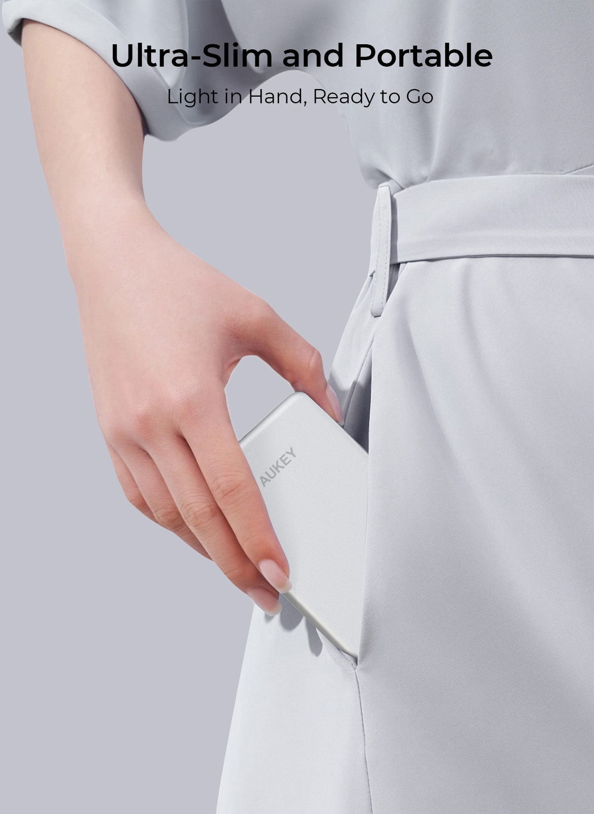 AUKEY MagFusion Slim 5000mAh PB-MS07 SW Powerbank Qi2 Wireless,White