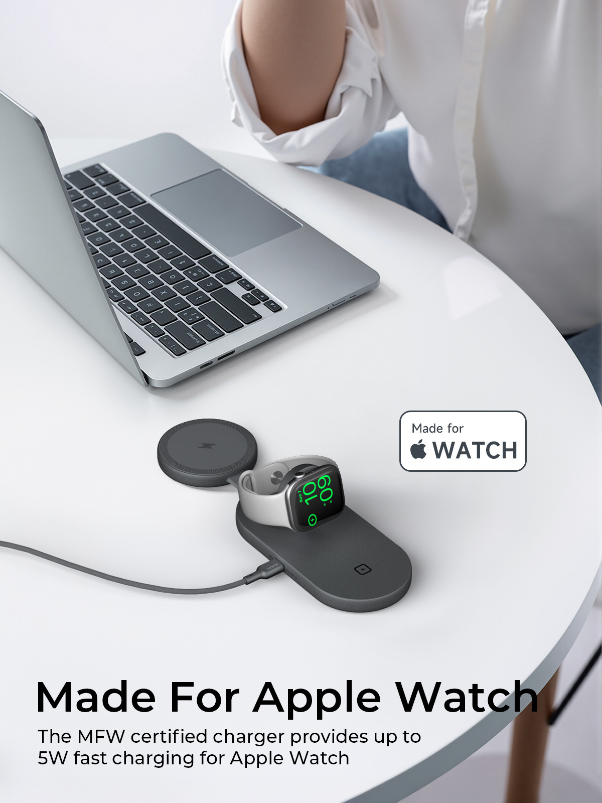 - MFW-Apple-Watch-Ladegerät: Dieses kabellose Ladegerät ist MFW-zertifiziert (Made for Watch) und garantiert optimale Leistung und Kompatibilität für Ihre Apple Watch. Sie können sicher sein, dass Ihre Uhr jedes Mal sicher und effizient aufgeladen wird.