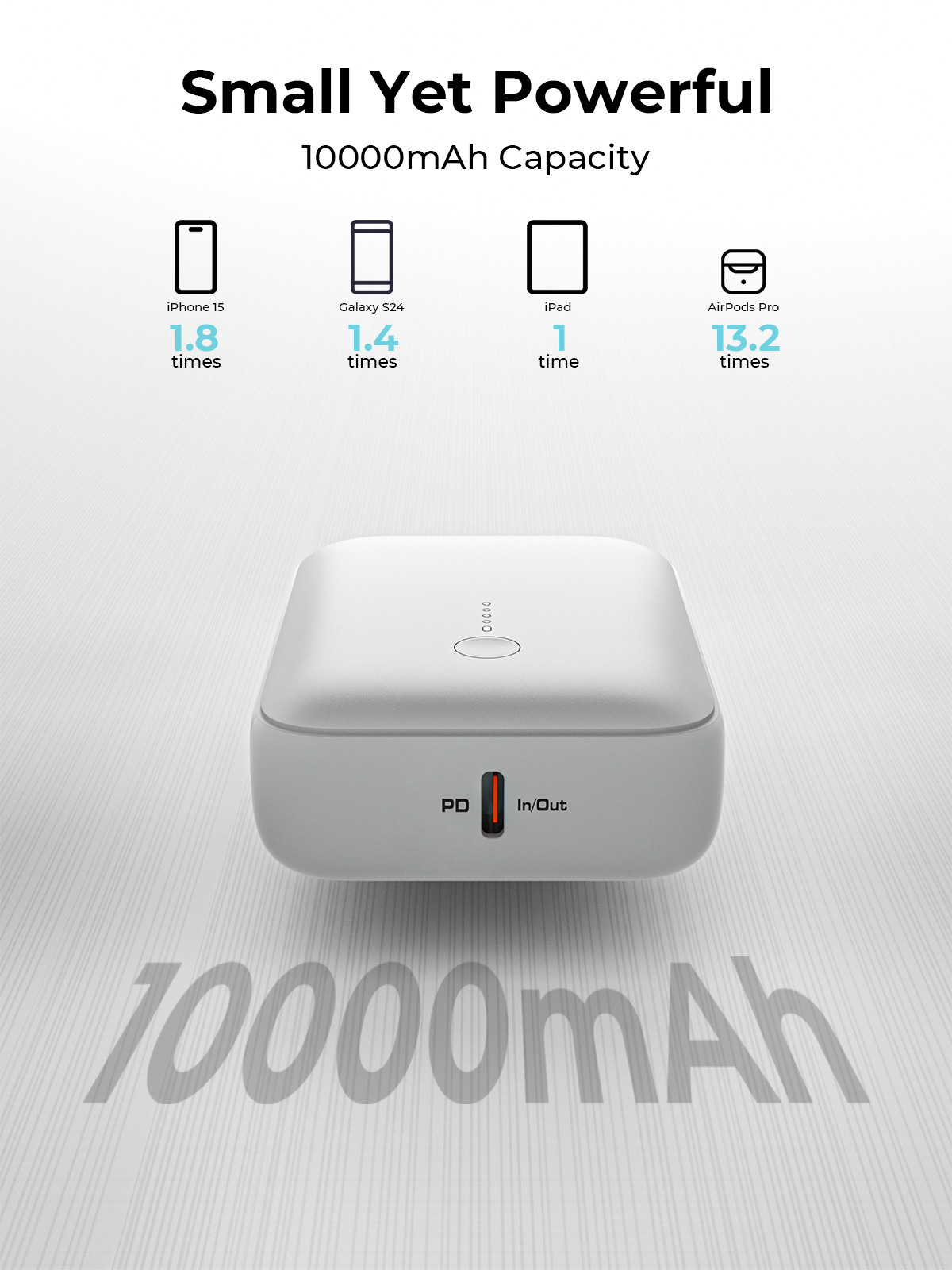 - Hohe Kapazität: Trotz ihrer kompakten Grösse verfügt diese Powerbank über eine beeindruckende Kapazität von 10000 mAh, mit der Sie die meisten Smartphones mehrfach aufladen können, bevor Sie die Powerbank selbst aufladen müssen.