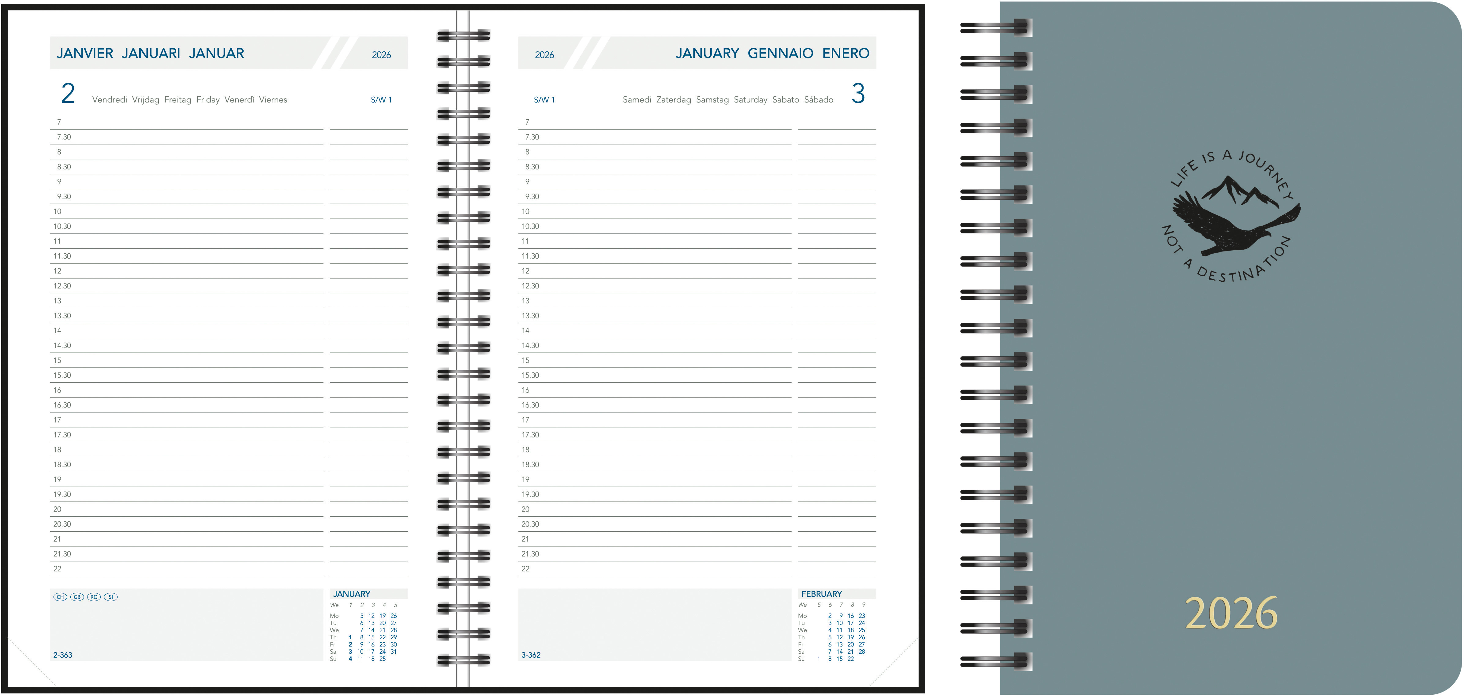 Diese AURORA Tagesagenda ist nicht nur ein idealer Planer mit seinem Halbstundenformat von 7-22 Uhr, sondern ist durch die Spiralbindung auch sehr praktisch in der Handhabung, mit modernem Polypropylen-Einband.