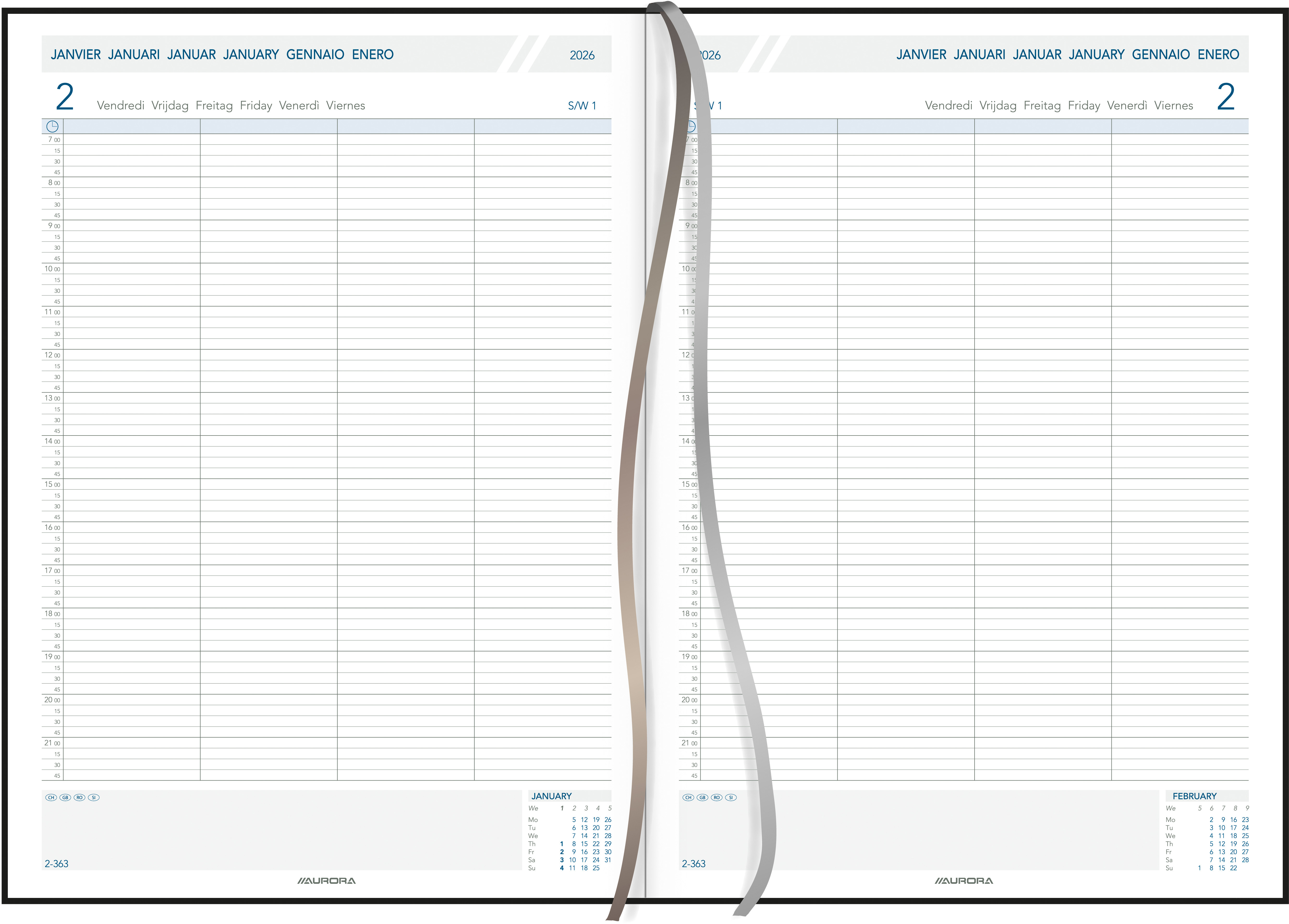 Die praktische Agenda von AURORA bietet Ihnen genügend Platz für alle Ihre Notizen und Termine, so behalten Sie immer den Überblick!