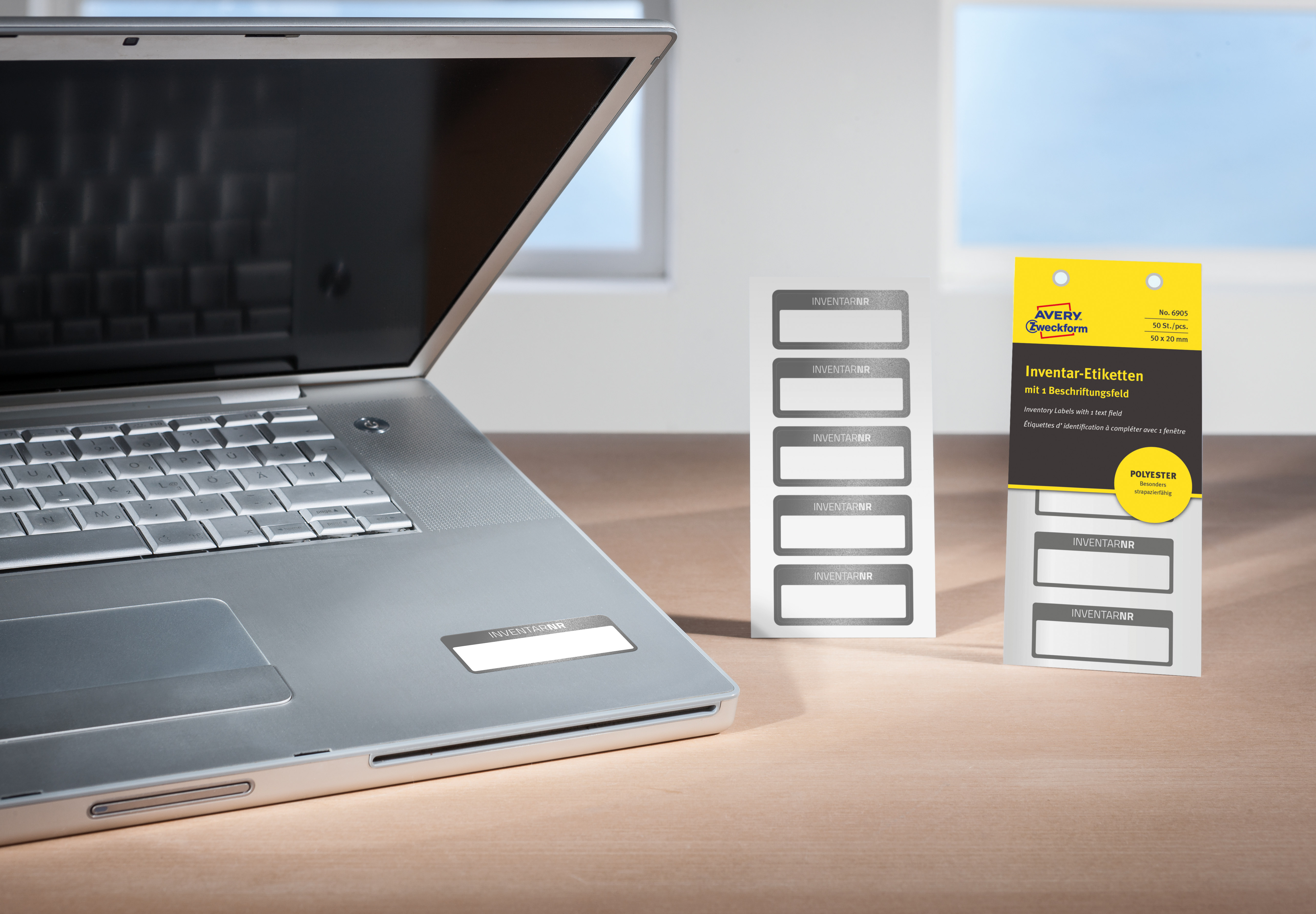 Produktinformationen "AVERY ZWECKFORM Inventar-Etiketten 50x20mm 6905 schwarz, Polyester 10Bl.50Stk."
