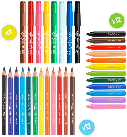 Aus der beliebten BIC Kids Produktreihe: das BIC Kids Memory Spiel Reiseset um den Geist und die Kreativität von Kindern anzuregen. Die stabile Metallbox enthält: 12 extrem robuste holzfreie BIC Kids Evolution Dreikant-Malstifte, die so geformt sind, dass sie kleine Finger natürlich und ergonomisch positionieren; 12 BIC Kids Plastidecor Dreikant-Malkreiden mit sauberen Kunststoff-Wachs-Schäften in 12 lebendigen Farben; 8 BIC Kids Visacolor XL Mal-Filzstifte mit rundem Schaft und robuster fester breiter Spitze; und 32 Memory-Teile zum Ausschneiden und Ausmalen. Die BIC Kids Qualität vereint Hochwertigkeit, Lernen und Spass in einem bunten, wiederverwendbaren Set