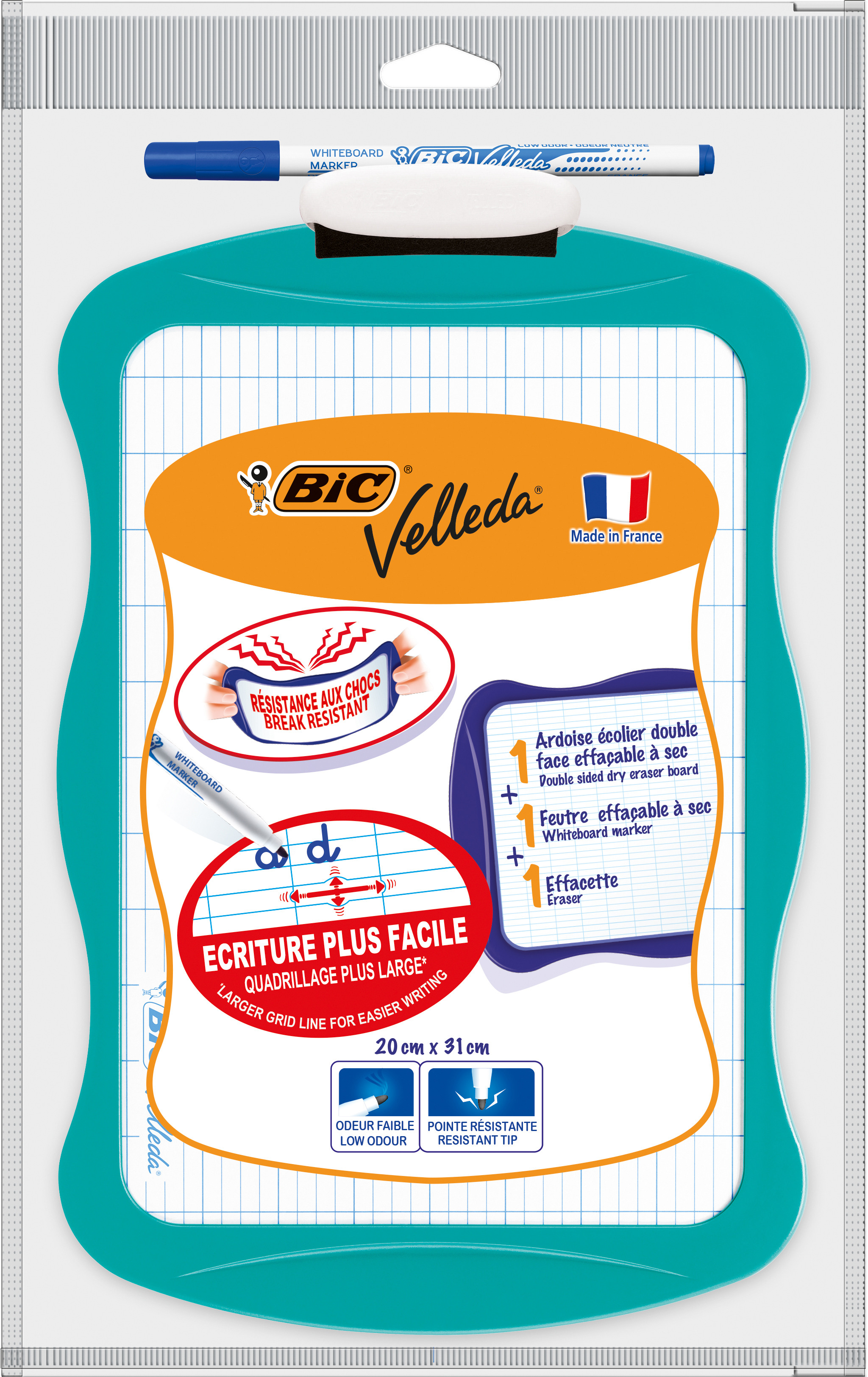 BIC Schultafel Whiteboard 20x31cm 841362 inkl. Velleda Marker ass.