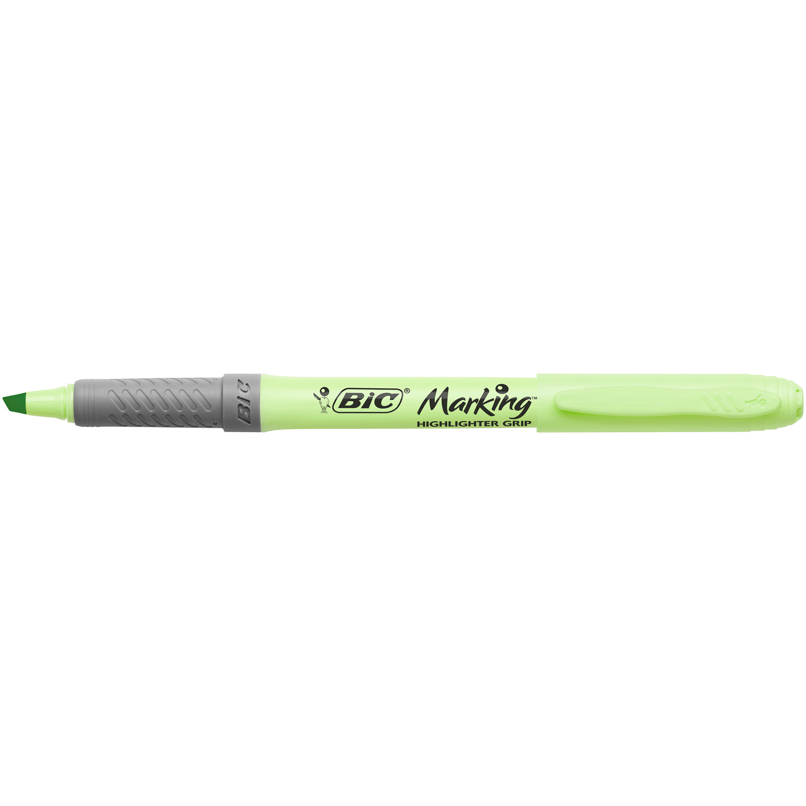 Textmarker BiC Highlighter Grip Pastel 1.5mm-3.5mm. Mit Pastell-Farben auf Wasserbasis. Mittlerer Schaft mit Kappe und Clip in Tintenfarbe und grauem Antirutsch-Gummigriff. Sicherheits-Kappe mit hörbarem Klick zur Verschluss-Kontrolle. Bis zu 24 h Austrocknungsschutz (Cap-Off-Zeit). Geeignet für Papier, Photokopien und Fax. Schlägt nicht durchs Papier. Mittlere Keilspitze mit Strichbreite 1.5-3.5 mm, für feines Unterstreichen bis breiteres Markieren.4 Assortierte Pastell-Farben: Gelb, Aqua, Rosa, Hellgrün.