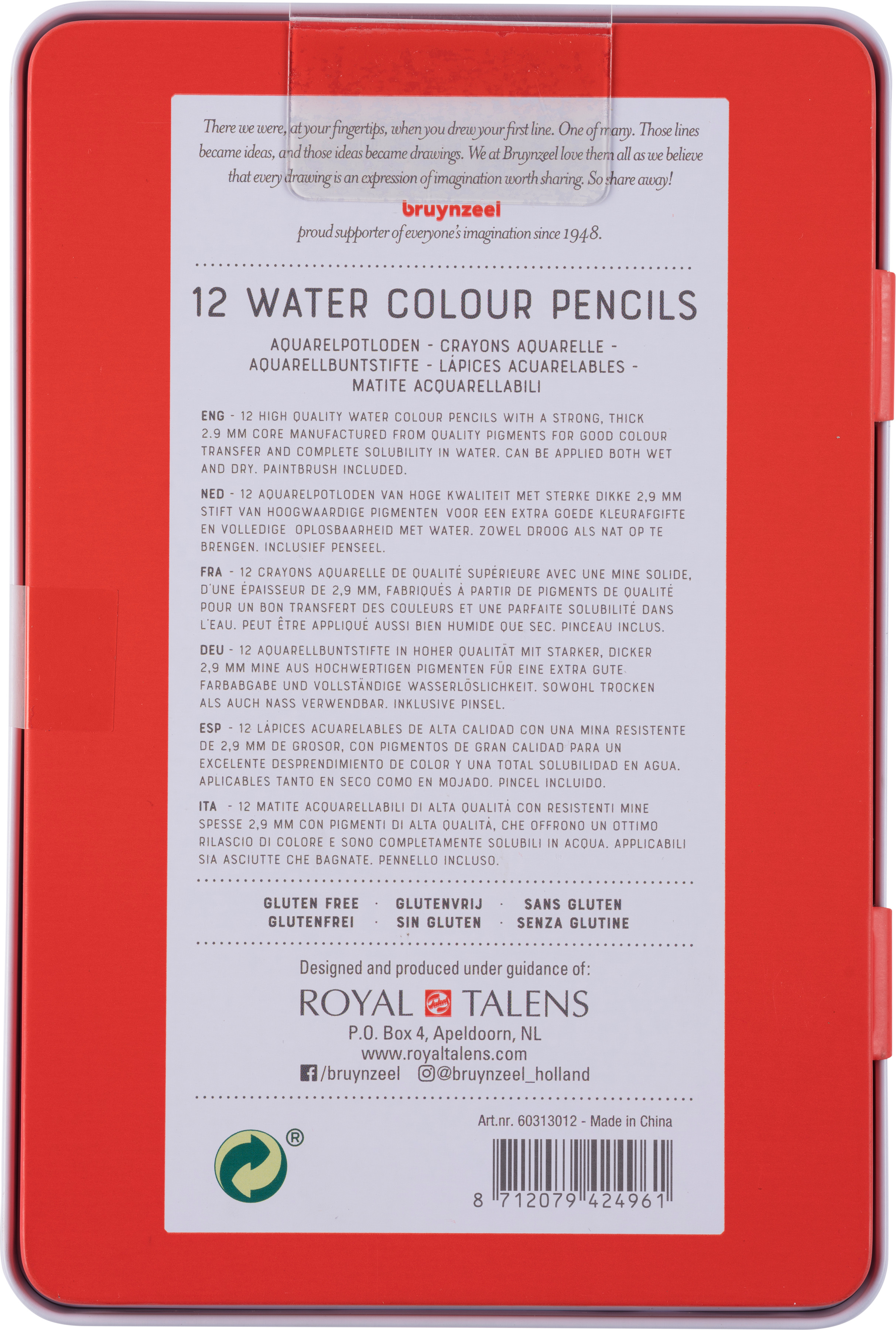 Produktinformationen "BRUYNZEEL Aquarellfarbstifte Expression 60313012 12 Farben Metalletui"