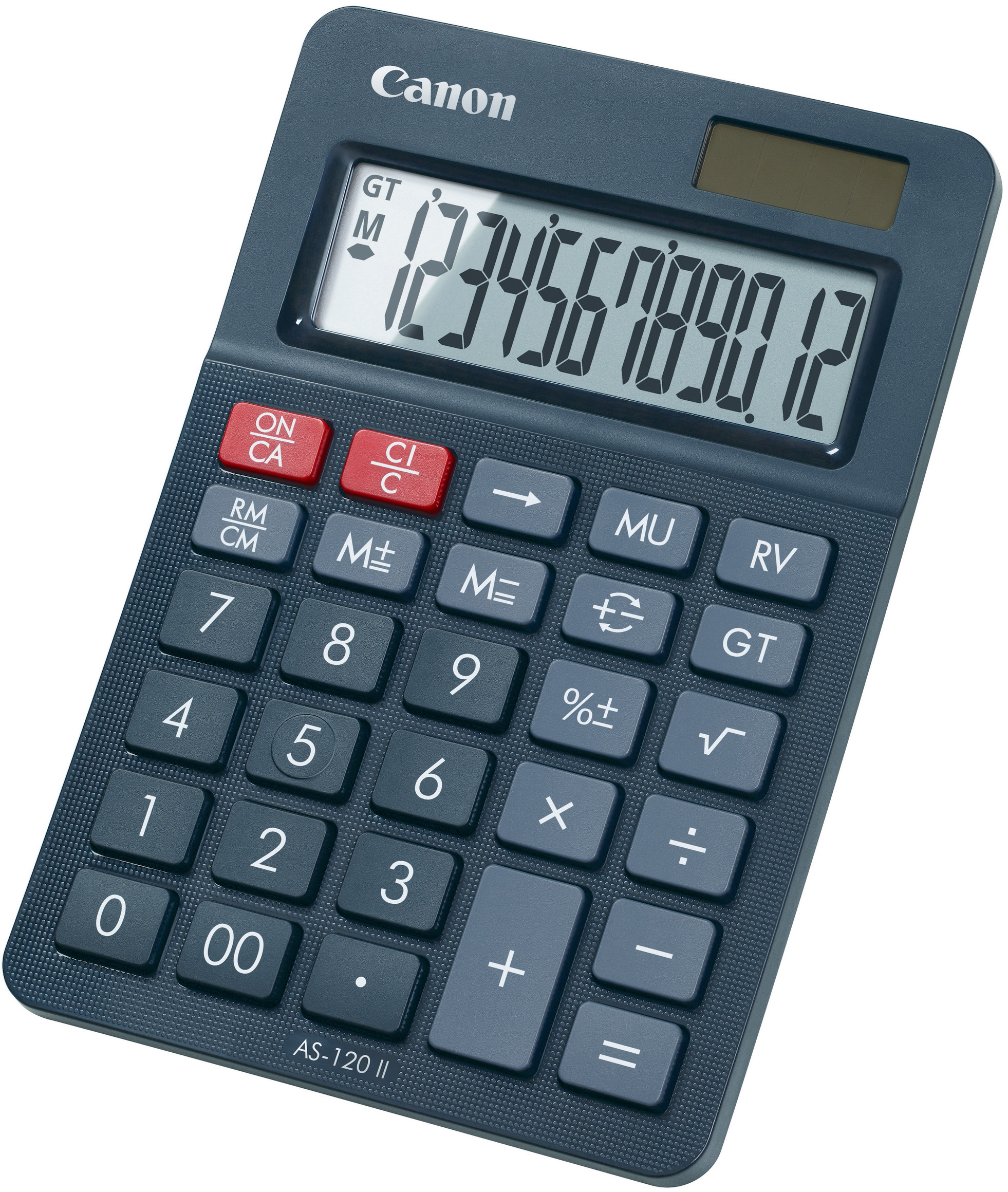 Der AS-120 II ist ein Tischrechner mit einem 12-stelligen angewinkelten Display. Er unterstützt auch Markup- und Rückwärts-Funktionen. Die beeindruckende Gesamtsummenspeicher-Funktion erleichtert komplexe Berechnungen, indem sie die Zwischensummen nach jeder Berechnung speichert und die Gesamtsummen mit einem einzigen Tastendruck berechnet. Einige Teile des AS-120 II Rechners wurden aus recyceltem Material von Canon-Produkten hergestellt.