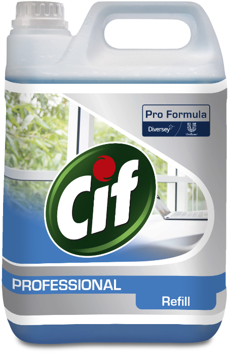 Cif Prof. Business Solutions Fenster und Oberflächenreiniger, beseitigt rasch Schmutz und Fett für streifenfreies Glänzen. Für Fenster und Einrichtungsoberflächen wie Spiegel, Tische und andere glatte Oberflächen geeignet.