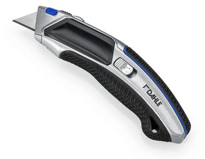 Profi Heavy Duty Cuttermesser mit Trapezklinge. Vollmetall-Cuttermesser mit Magazin für Trapezklingen und automatischer Klingennachführung (auto-load). Das vielseitige Werkzeug für den Profi. Leicht auswechselbare Trapezklingen aus SK5-Carbonstahl. Das stabile Metallgehäuse garantiert eine stabile und exakte Führung der Trapezklinge. Ergonomisch geformter Griff aus Metall mit Rippenstruktur für sicheren Halt. Lieferung mit eingesetzter Klinge auf SB-Karte. inkl. 4 Ersatzmesser