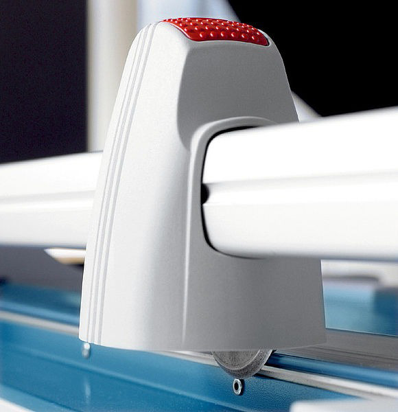 Komfortabler Rollenschneider für den professionellen Einsatz. Stabiler Metalltisch mit rutschfesten Gummifüssen für einen sicheren Stand. Nützliche Formatlinien auf dem Tisch mit mm-Teilung entlang der Schneidkante. Selbstschärfendes Stahl-Rundmesser im geschlossenen Sicherheits-Schneidkopf, - geschliffen, gehärtet. Untermesser aus Stahl, geschliffen und gehärtet. Rundmesser im geschlossenen Kunststoffkopf. Zwei Winkelanlagen mit mm-Skala für einen exakten 90°-Schnitt. Einfacher Messerkopf-Wechsel.