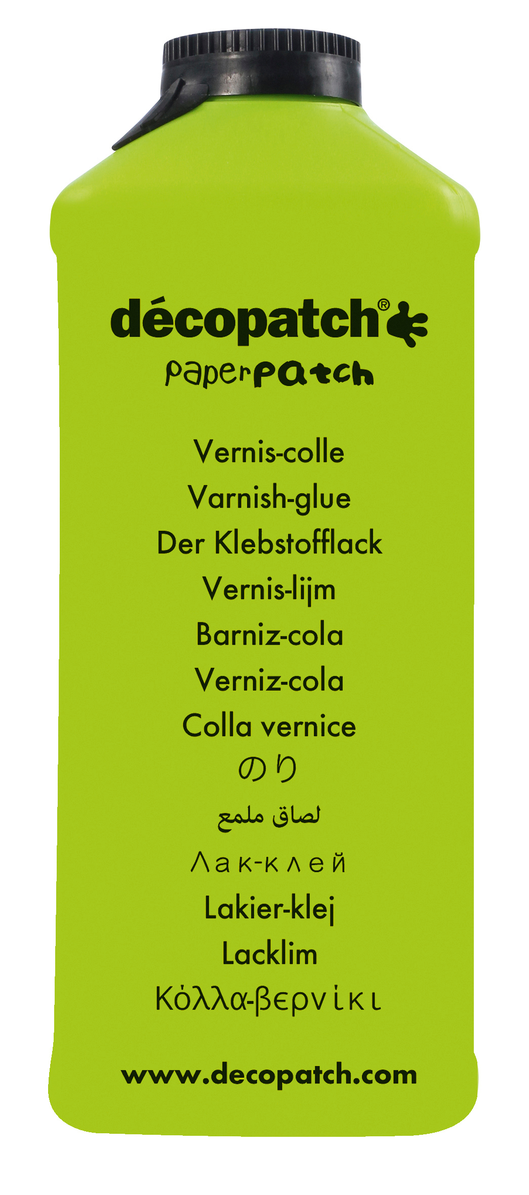 - Paperpatch Klebstofflack klebt nicht nur das Papier, sondern schützt auch gleichzeitig die Oberfläche. Er ist speziell für Décopatch-Papier entwickelt worden und hält auf jeder Oberfläche. Einmal getrocknet versiegelt er die Oberfläche mit einer klaren, seidenmatten und wasserfesten Schutzschicht. Der Klebstofflack ist auf Wasserbasis und trocknet sehr schnell (ca. 10 Minuten). Nach dem Öffnen ist der Klebstofflack noch bis zu 2 Jahre haltbar. Der Klebstofflack PaperPatch erfüllt strenge EU-Richtlinien.