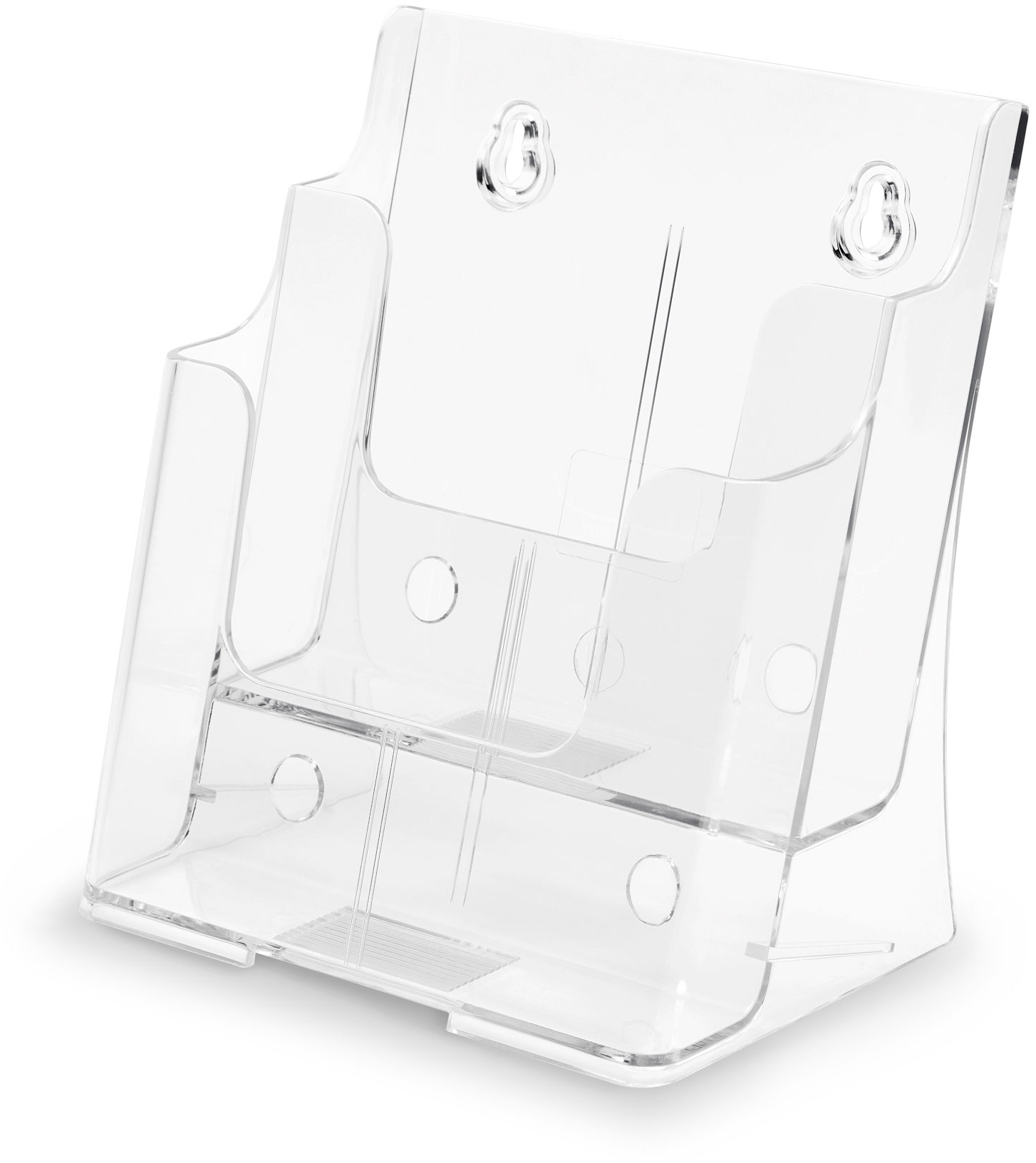 Für eine Vielzahl an Prospekten, spart wertvolle Präsentationsfläche. Zum Aufstellen oder zur Wandmontage. Abgeschrägt für eine stabile Produktpräsentation. Material: Polystyrol. Mit 2 Fächern.