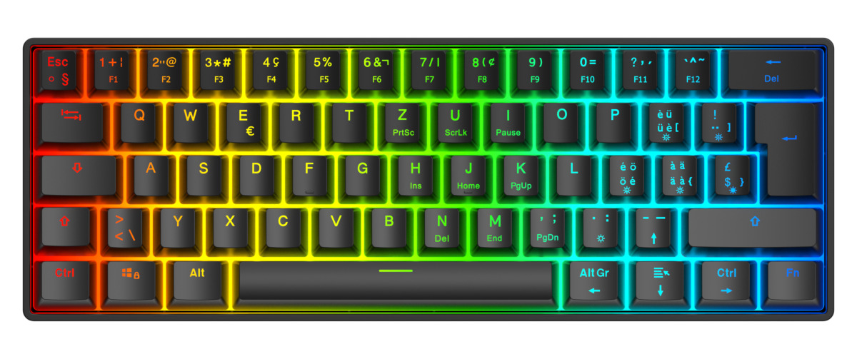 | Besonderheiten: | 60% Tastaturlayout, LED-Beleuchtung |