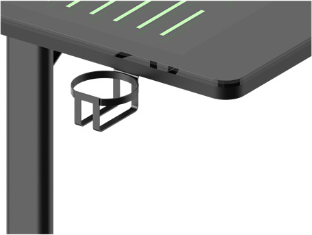 DELTACO GAMING DT420 RGB Gaming-Schreibtisch, Tempered Glass, Kabelmanagement, Becher- & Headset-Halter, schwarz. Unser DT420 ist der Gaming-Tisch für Gamer, die ohne RGB nicht leben können. Auf der Oberseite des DT420 finden Sie ein LED-Muster, das von Stockholms U-Bahn-Linien inspiriert ist. Der DT420 hat eine Breite von 140 cm, was ihn vielleicht am besten für ein Setup mit einem einzigen Monitor eignet, aber mit ein wenig ausgeklügelter Monitorplatzierung können Sie auch zwei Monitore verwenden. Die Oberfläche des DT420 ist aus gehärtetem Glas, um der RGB-Beleuchtung das gewisse Extra zu verleihen, steuern Sie das RGB mit Hilfe der mitgelieferten Fernbedienung. Auf der Rückseite des DT420 befindet sich eine Aussparung für ein einfaches Kabelmanagement, darunter befindet sich auch ein Kabelmanagement-Netz, um den sonst entstehenden Kabelsalat noch besser zu kontrollieren. Um das DT420 komplett zu machen, haben wir einen Getränkehalter und einen Headset-Halter hinzugefügt.