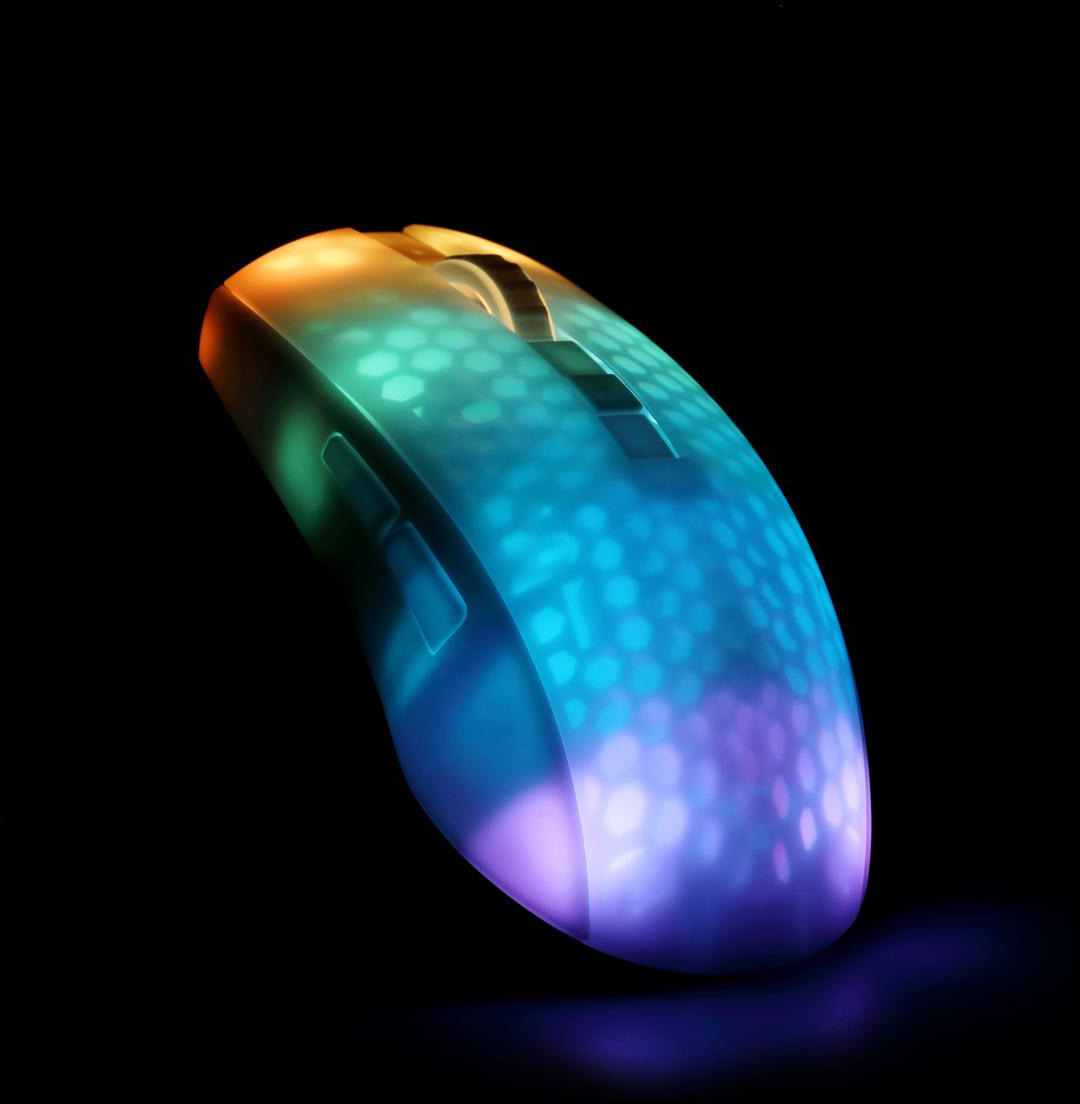- Ist es nicht an der Zeit, Ihr Spielerlebnis zu verbessern? Bringen Sie Ihr Gaming-Setup mit dieser kabellosen, transparenten RGB-Maus ins rechte Licht! Schlankes Design, leuchtende RGB-Beleuchtung und ein geringes Gewicht bieten Leistung und Komfort für Freizeit- und Profispieler.