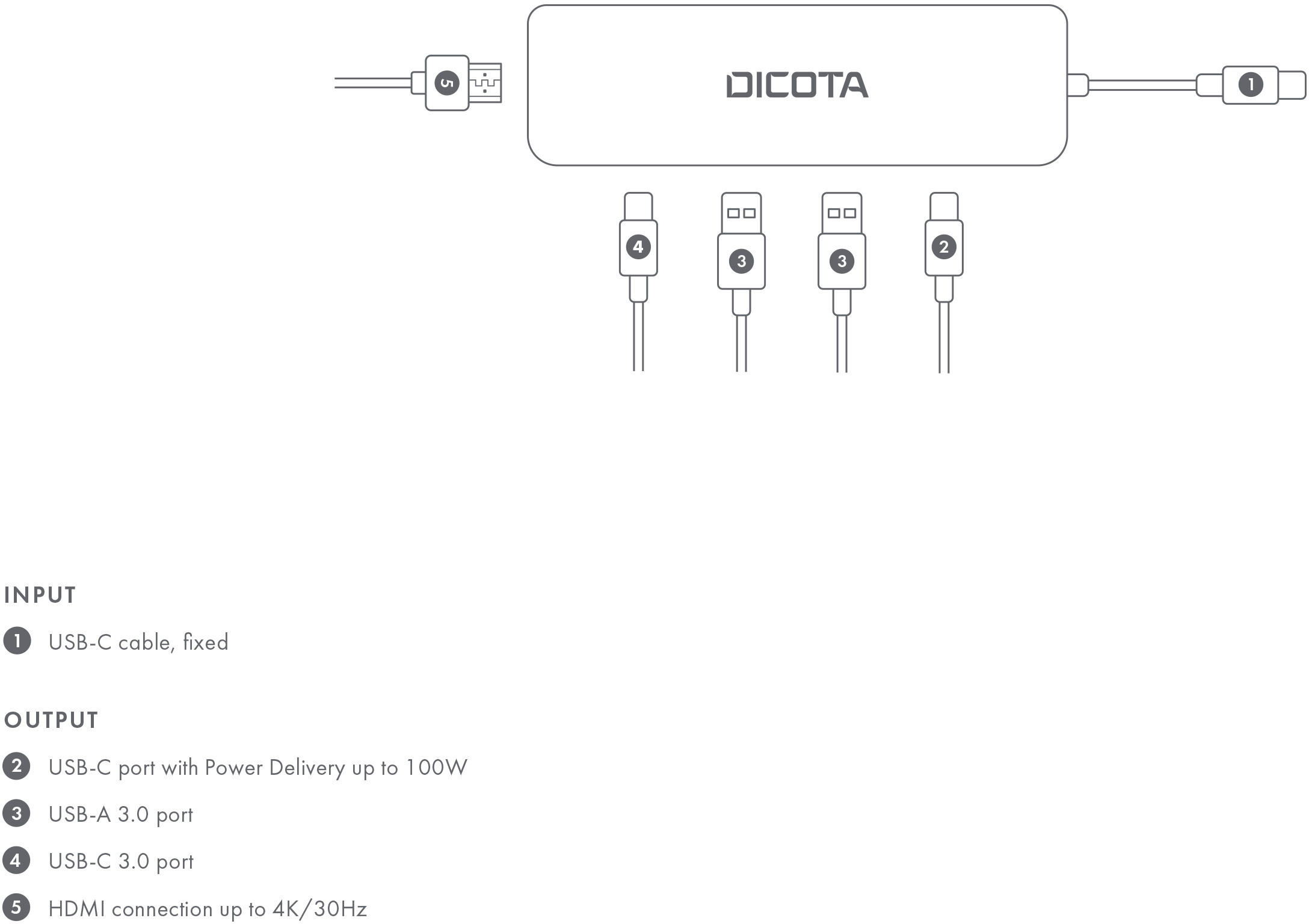 Produktinformationen "DICOTA USB-C 5-in-1 Video Hub D32060 4K PD 100W"