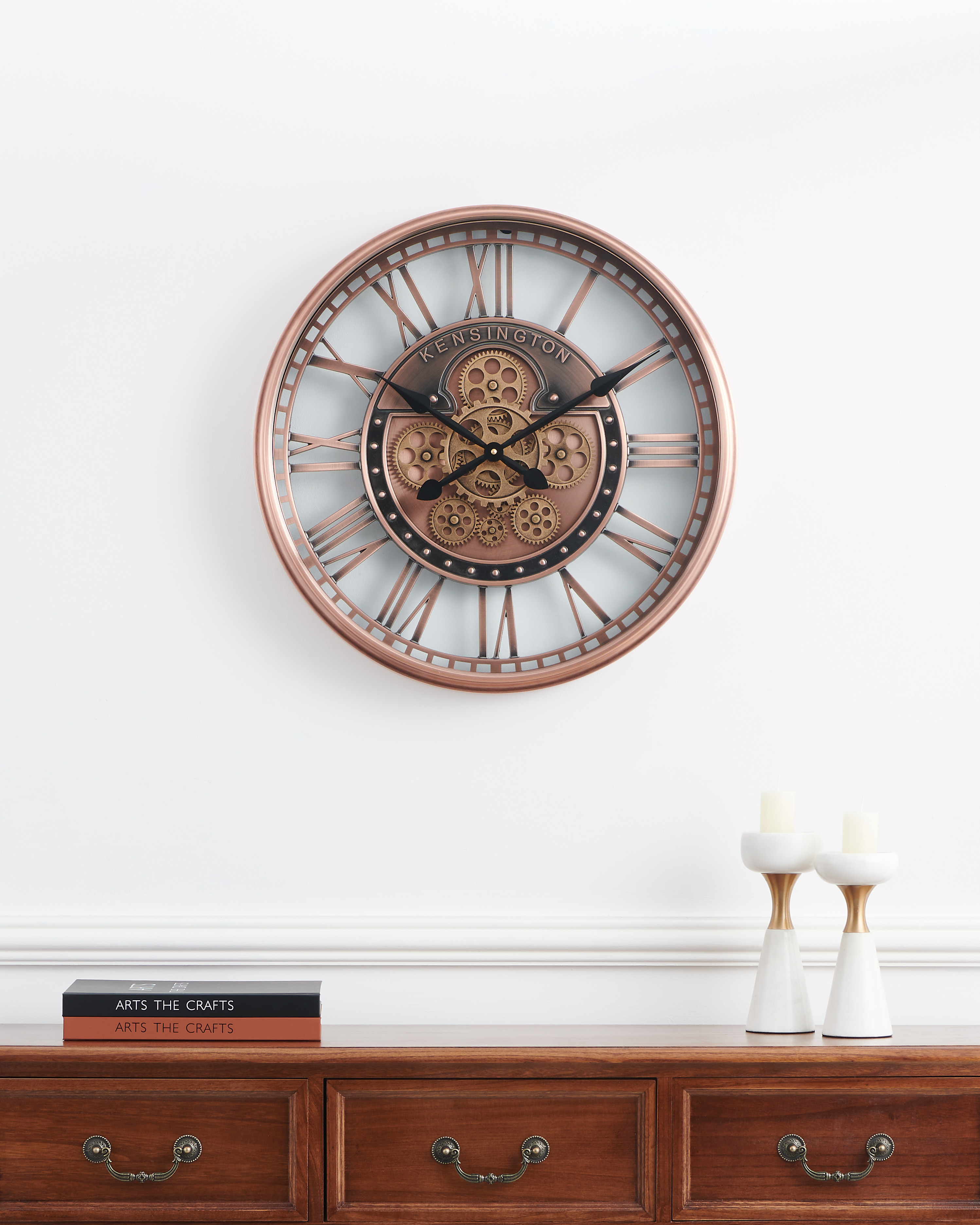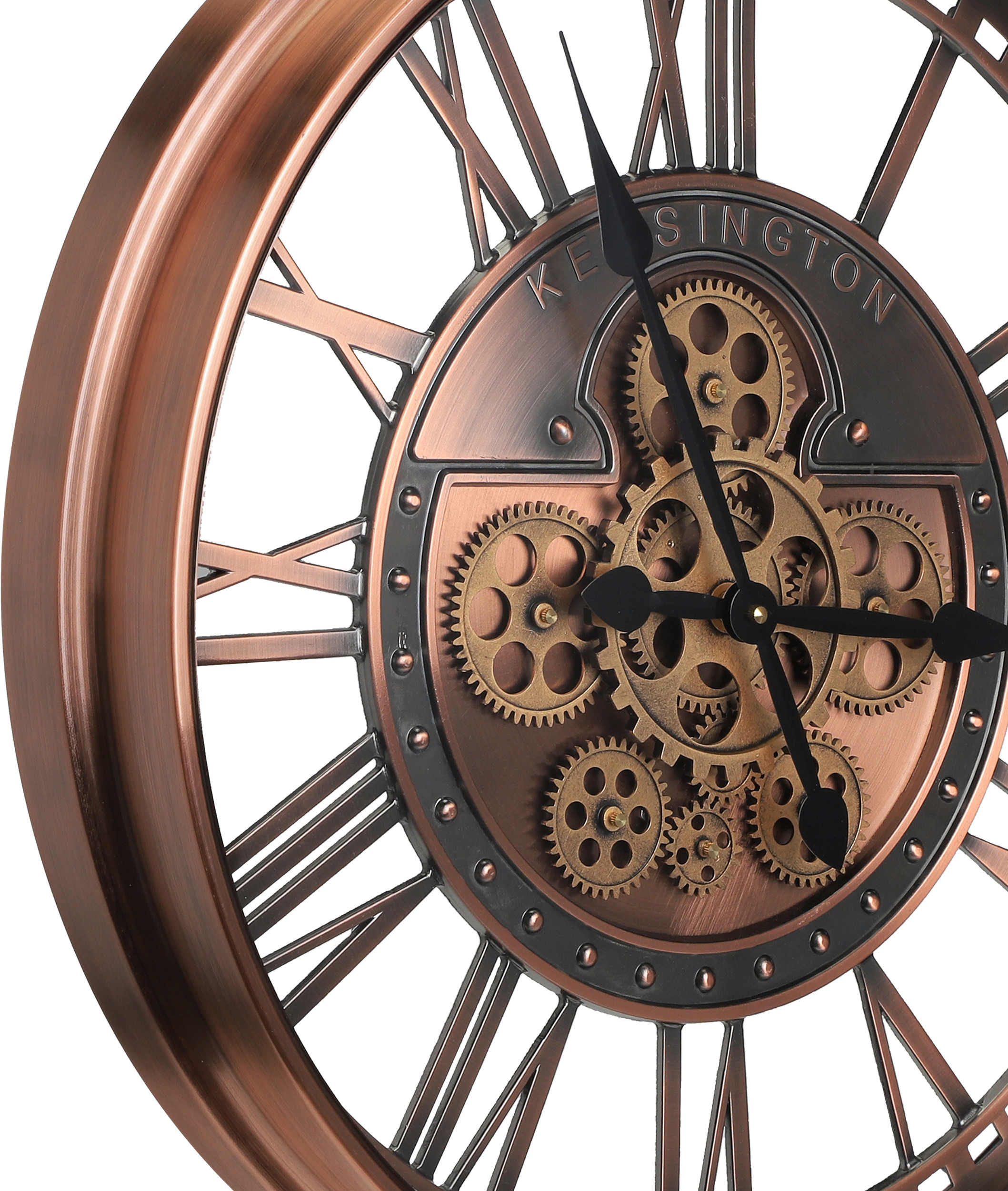 Behalte mit der KENEMA Wanduhr immer die Zeit im Blick. Mit ihrem Industrial und eleganten Design schmückt dieses Deko-Accessoire deine Wand im Wohn-Essbereich, Schlafzimmer oder Office. Die mechanisch-geformte Uhr in Kupfer-Antik-Optik, fügt sich mit ihrem hochwertigen Materialien und den schwarzen Zeigern bestens in jede Einrichtung ein. Die Wanduhr wird exklusive Batterien geliefert. Mit dem Einstellrad auf der Rückseite kannst du bequem die Zeit einstellen. Das Bewegen der Zeiger von Hand kann das Uhrwerk beschädigen.