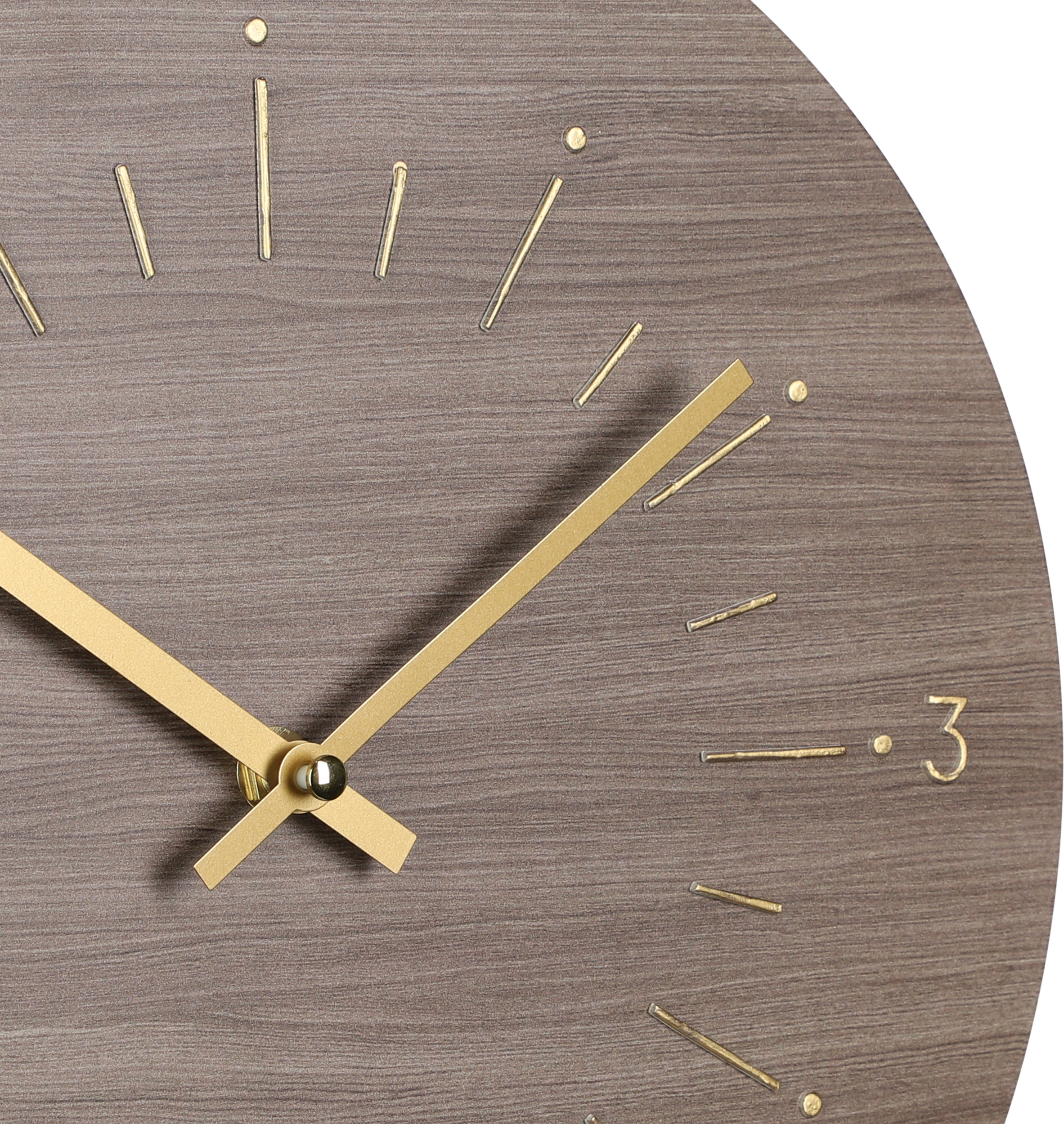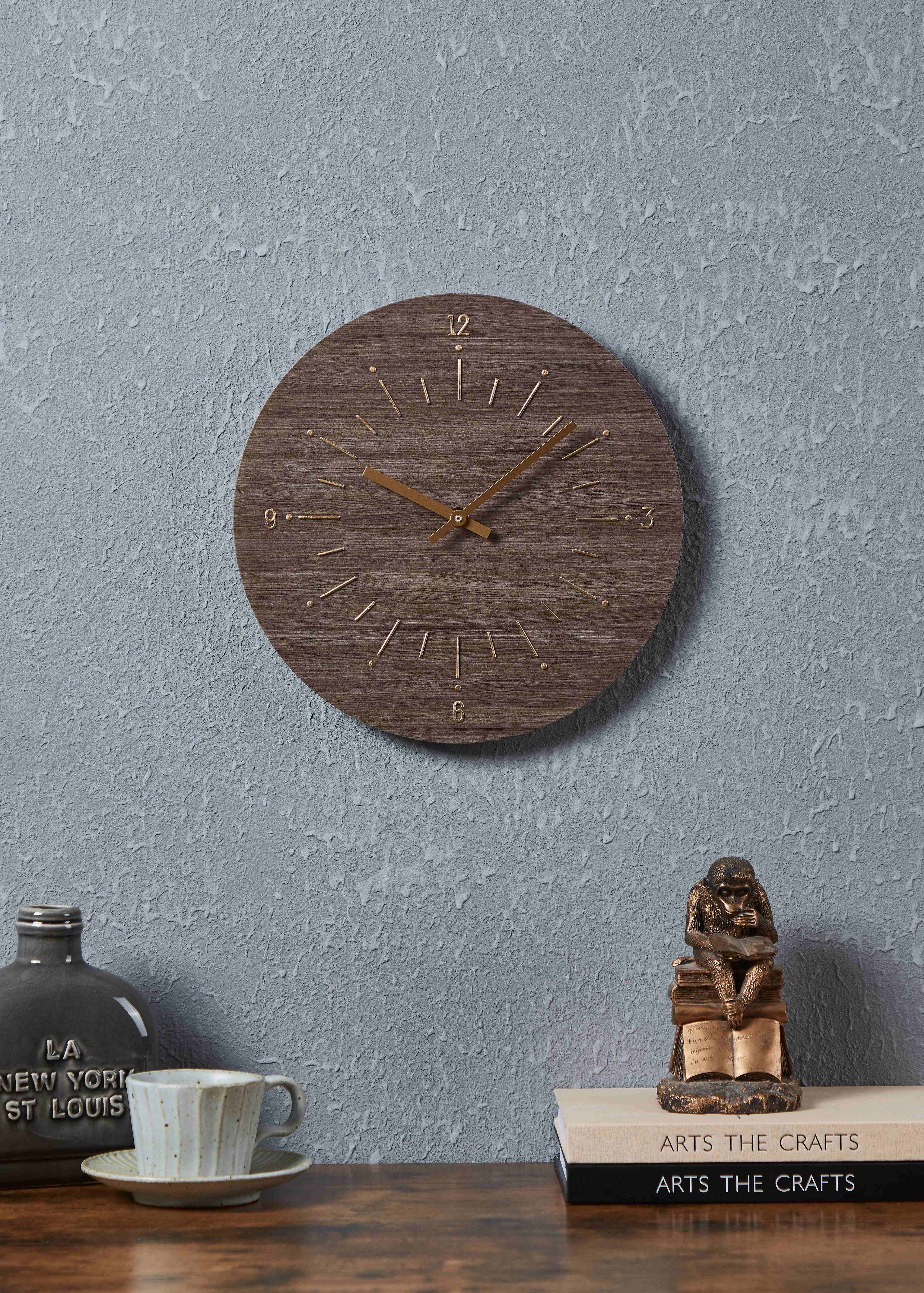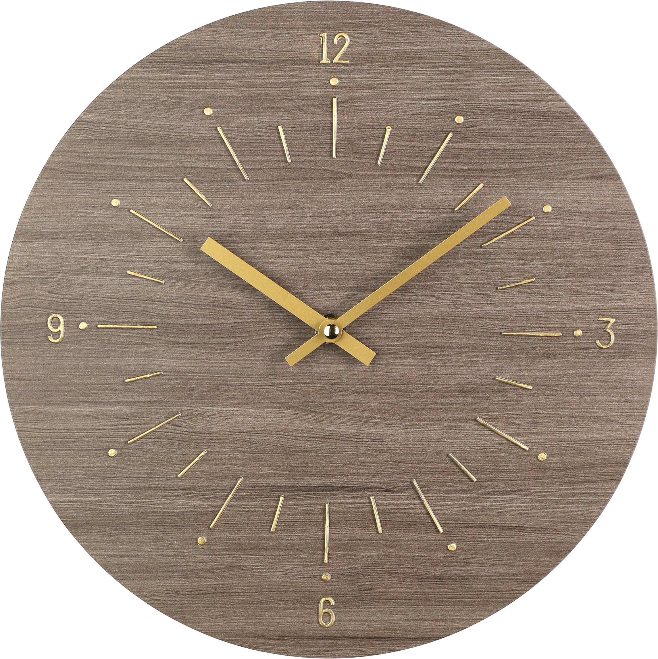 Behalte mit der stilsicheren TAKAHAGI Wanduhr immer die Zeit im Blick. Mit ihrem schlichten Industrial-Style schmückt dieses Deko-Accessoire deine Wand im Wohn-Essbereich, Schlafzimmer oder Office. Die Uhr in Holz- und Nussbaumoptik fügt sich mit ihren Zeigern in Messingfarben bestens in jede Einrichtung ein. <br>Die Wanduhr wird exklusive Batterien geliefert. Mit dem Einstellrad auf der Rückseite kannst du bequem die Zeit einstellen. Das Bewegen der Zeiger von Hand kann das Uhrwerk beschädigen.<br>Die Deko-Uhr hat einen Durchmesser von 30 cm.