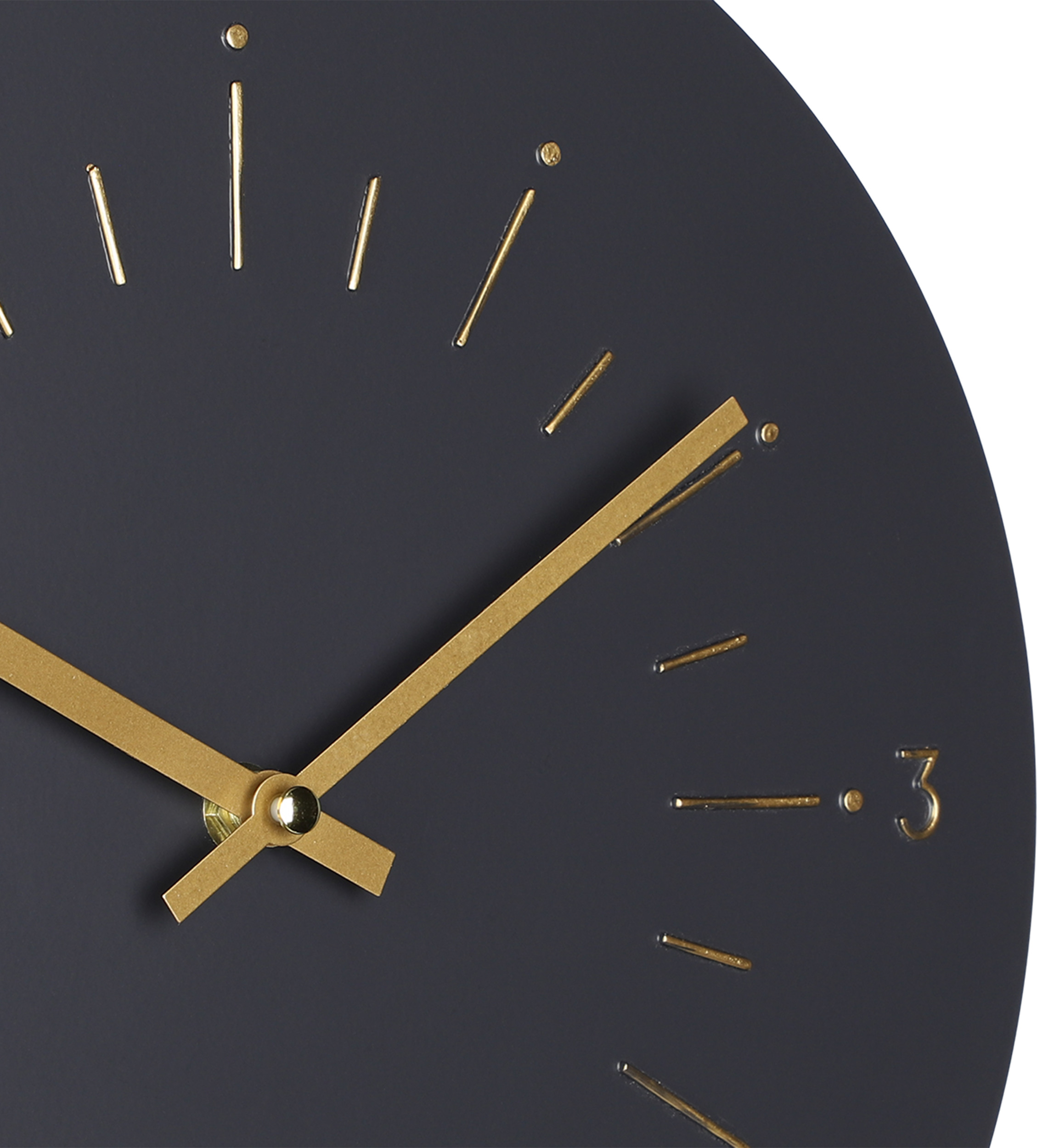 Behalte mit der stilsicheren TAKAHAGI Wanduhr immer die Zeit im Blick. Mit ihrem schlichten Industrial-Style schmückt dieses Deko-Accessoire deine Wand im Wohn-Essbereich, Schlafzimmer oder Office. Die Uhr in mattem Schwarz fügt sich mit ihren Zeigern in Messingfarben bestens in jede Einrichtung ein. <br>Die Wanduhr wird exklusive Batterien geliefert. Mit dem Einstellrad auf der Rückseite kannst du bequem die Zeit einstellen. Das Bewegen der Zeiger von Hand kann das Uhrwerk beschädigen.<br>Die Deko-Uhr hat einen Durchmesser von 30 cm.