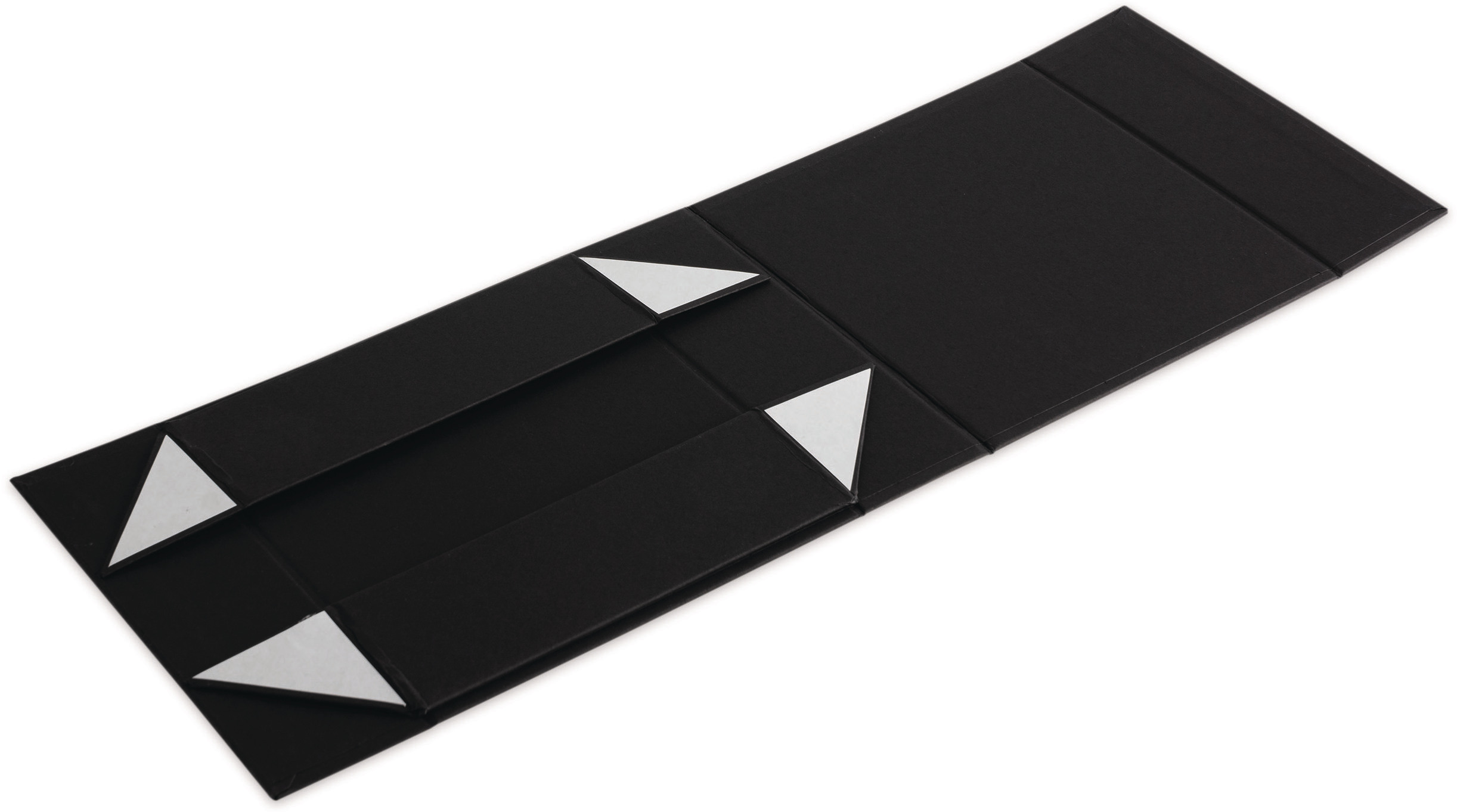 Hochwertige Geschenkbox aus schwarzem Karton (1200 g/m²). Mit Magnetverschluss. Flach angeliefert und dank Haftklebestreifen einfach aufzustellen.