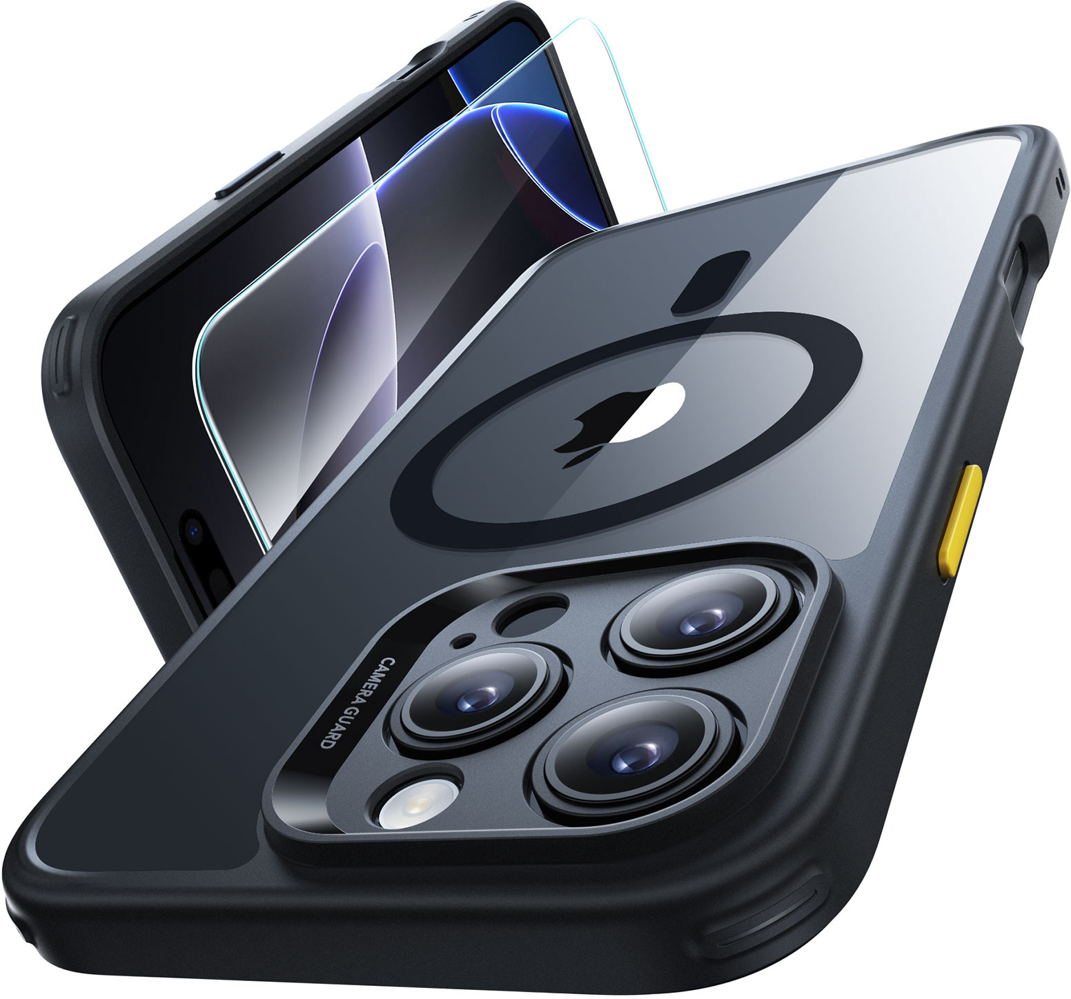 Kompatibilität: nur für iPhone 16 Pro; Im Lieferumfang enthalten: 1 durchscheinendes, mattes Gehäuse, 1 Displayschutzfolie aus gehärtetem Glas, 2 Sätze austauschbarer Easy-Press-Tasten und 1 Ausrichtungsrahmen