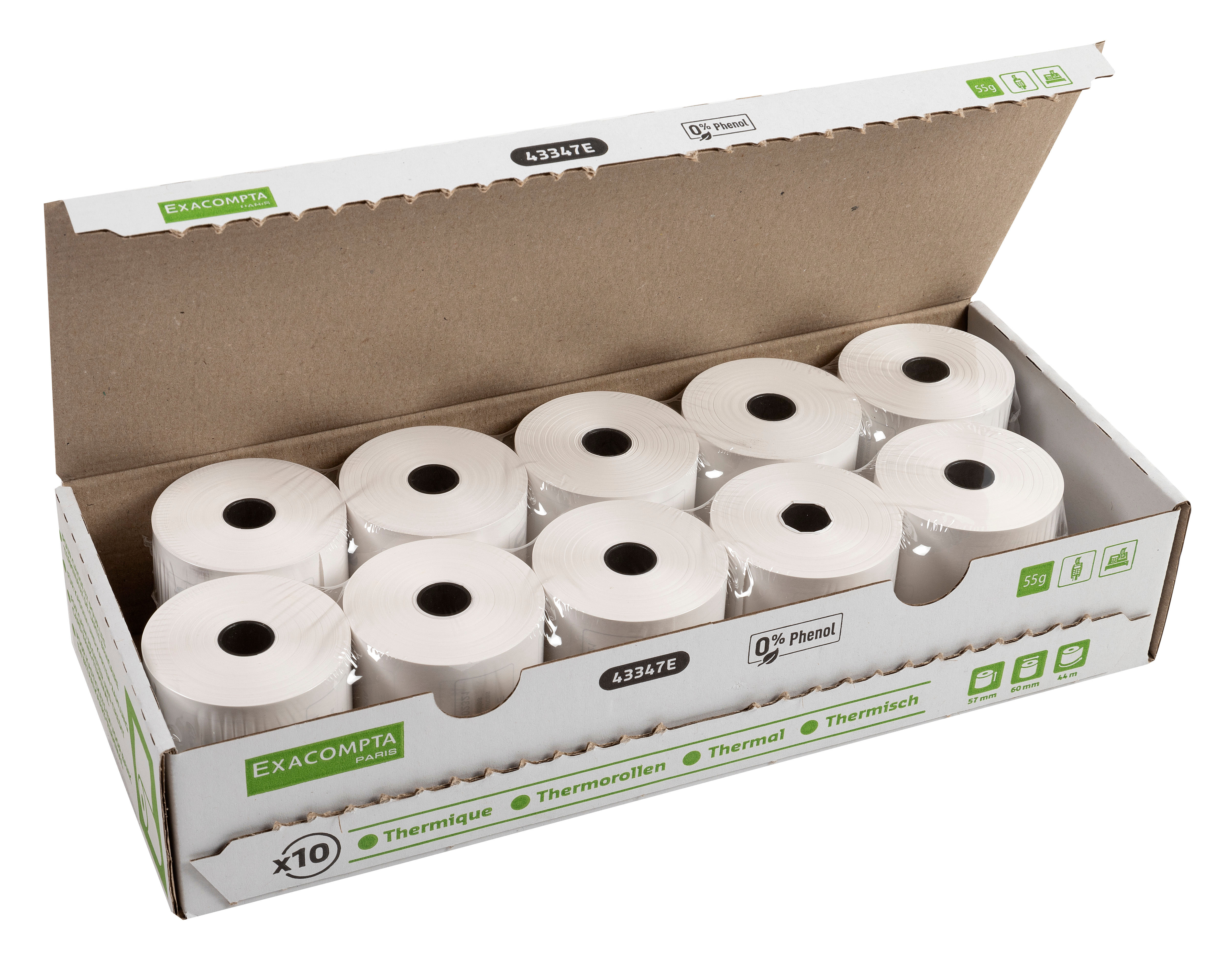 EXACOMPTA Rolle Thermopapier 10 Stk. 43347E 57x60mmx44m für Kasse
