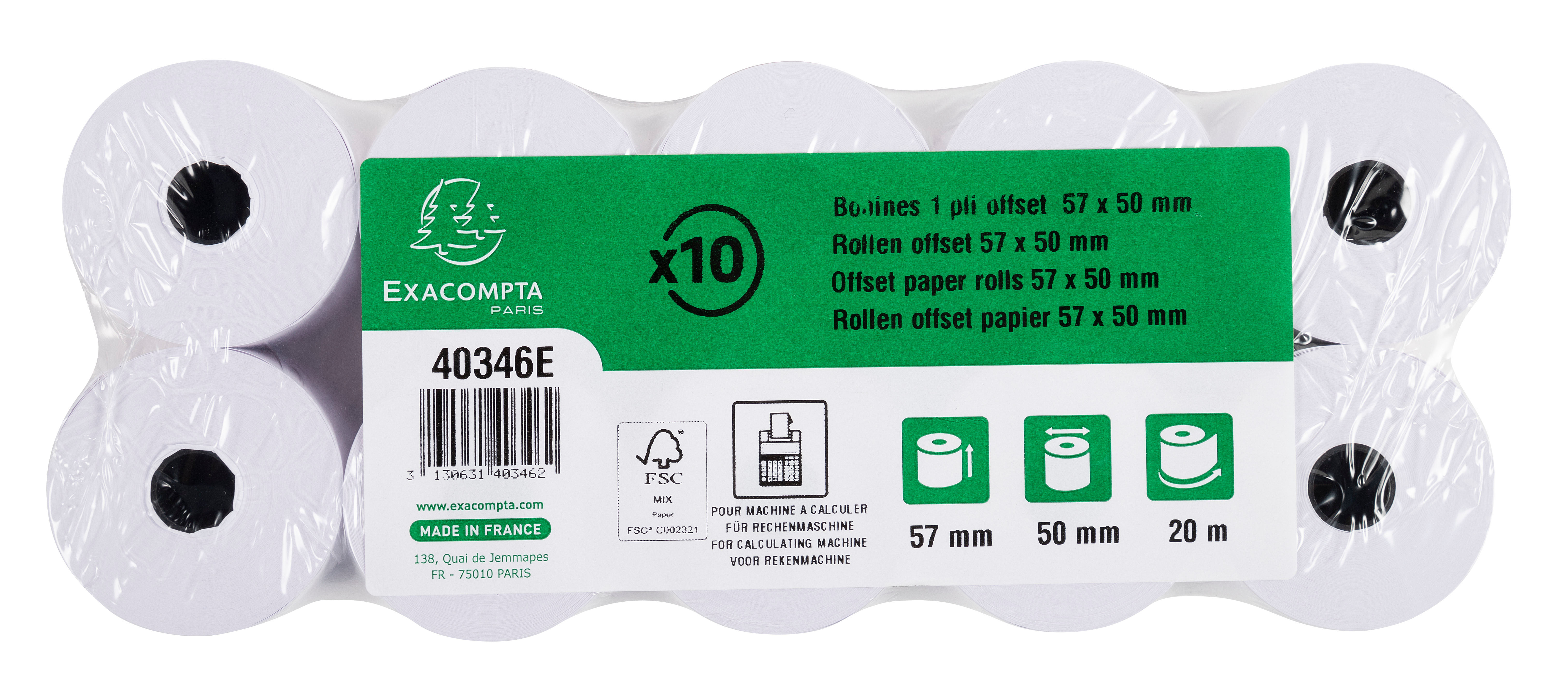 EXACOMPTA Rollen Offset Papier 10 Stk. 40346E 57x50mmx20m für Kasse