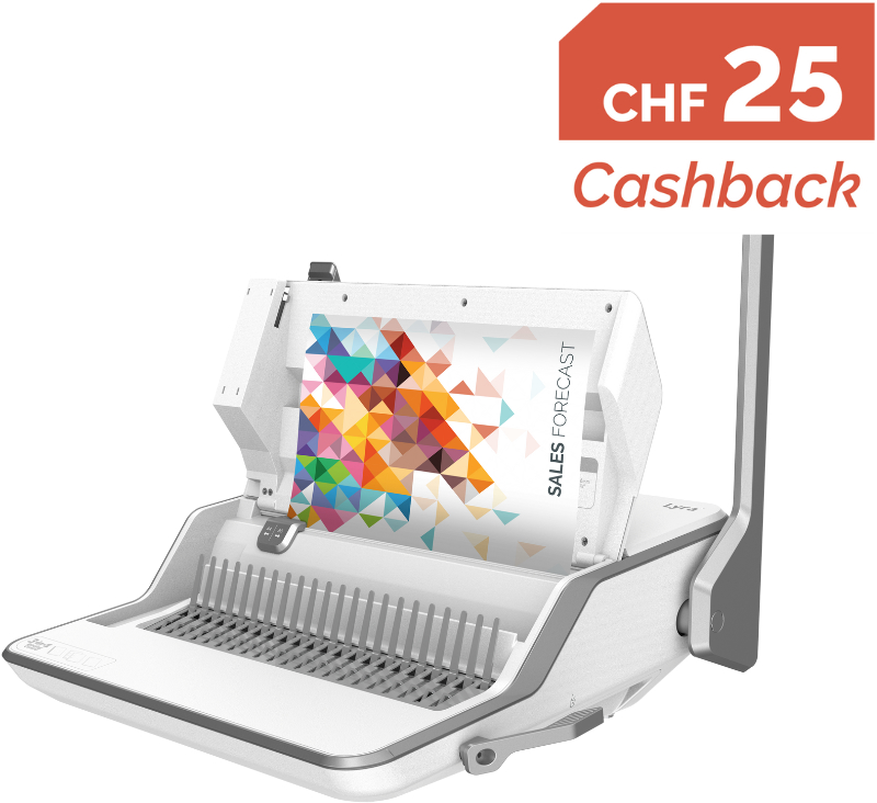 - Vereint die Funktionen Binden, Heften und Lochen in einem Gerät