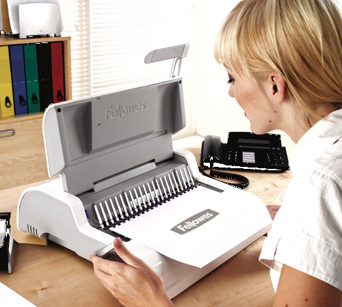 Stanzt elektrisch mühelos bis zu 15 Blatt (80g/qm) gleichzeitig und hat eine Bindekapazität von 300 Blatt mit maximal 38mm Plastikbinderücken. Der angewinkelte Kammträger erleichtert das Einlegen der Blätter. Einstellbarer Randanschlag zur genauen Ausrichtung des Papiers. Aufbewahrungsfach mit patentierter Dokument- und Binderückenmessfunktion zur schnellen Auswahl des passenden Binderückens. Das Stanzrestefach öffnet sich automatisch wenn es voll ist. Inklusive Starterkit für 10 Dokumente. 2 Jahre Garantie.