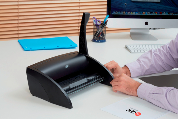 Das CombBind C100 ist ideal für das Heim- oder Kleinbüro mit gelegentlichem Bindebedarf. Es locht bis zu 9 Blatt (80 g/m²) und bindet bis zu 160 Blatt (A4, mit 19-mm-Binderücken), ist dabei aber kompakt, leicht und problemlos zu verstauen.