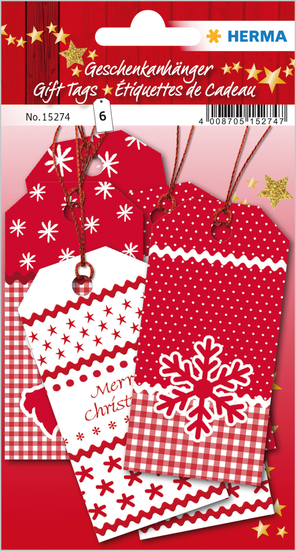 HERMA Geschenkanhänger Weihnachten 15274 rot 6 Stück