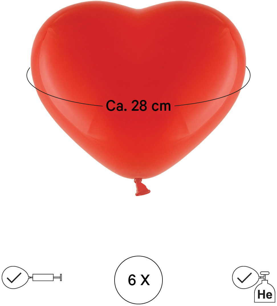 - Eigenschaften: Hochwertige Ballone in Herzform, die deiner Feier eine fröhliche Note verleihen. Nach dem Aufblasen haben sie einen Durchmesser von etwa 28 cm.
