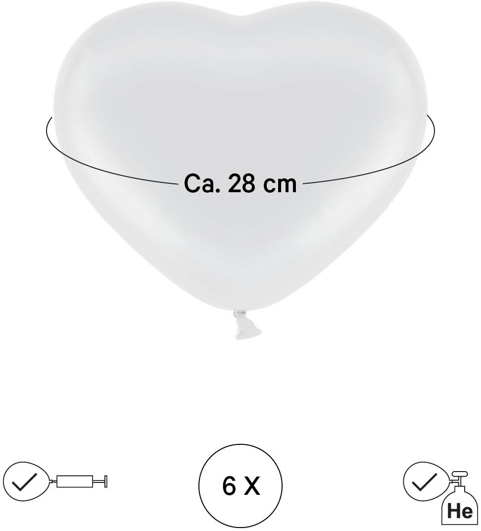 - Eigenschaften: Hochwertige Ballone in Herzform, die deiner Feier eine fröhliche Note verleihen. Nach dem Aufblasen haben sie einen Durchmesser von etwa 28 cm.