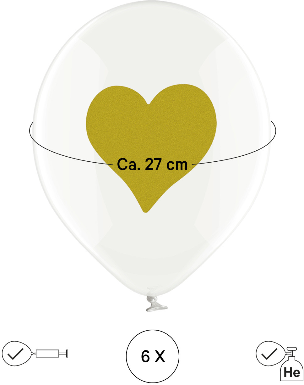 I AM CREATIVE Ballons goldenes Herz 27cm 1000-1059 transparent 6 Stück