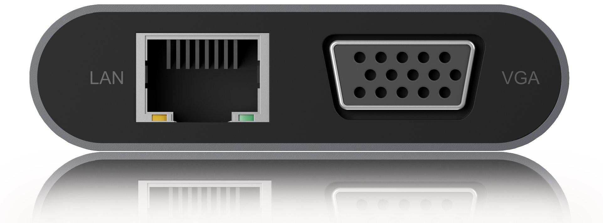 - USB-C, 3x USB-A 3.0, HDMI, VGA, SD/microSD Kartenleser, 3,5 mm Audio Combo-Buchse und Gigabit LAN