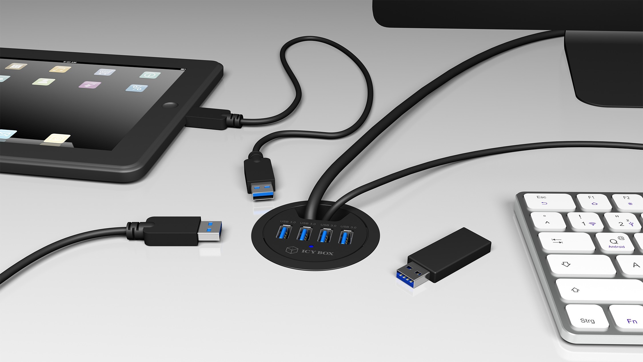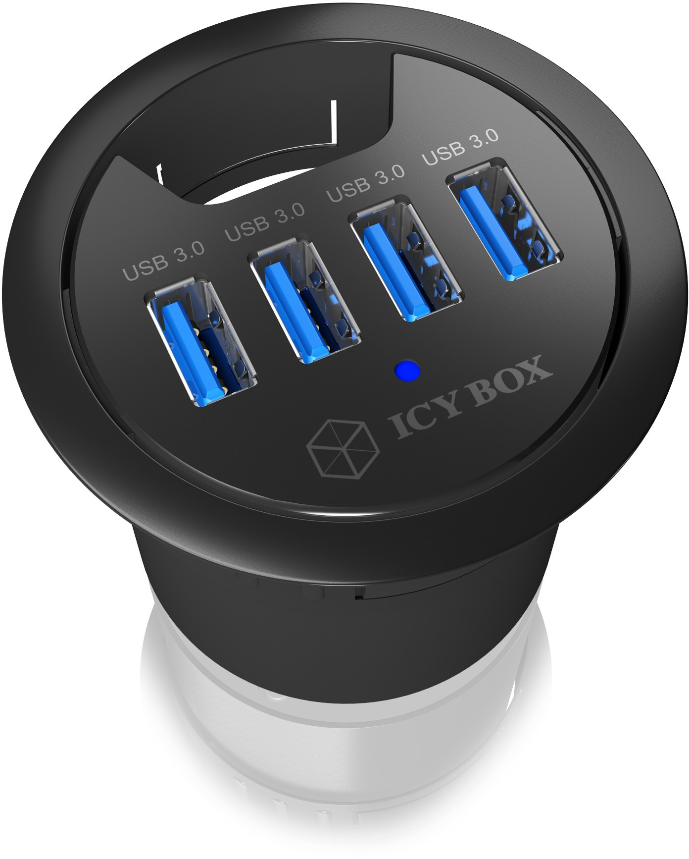 Produktinformationen "ICY BOX In-Desk USB Hub 60 mm black IB-HUB1403 4x USB 3.0 Typ A"