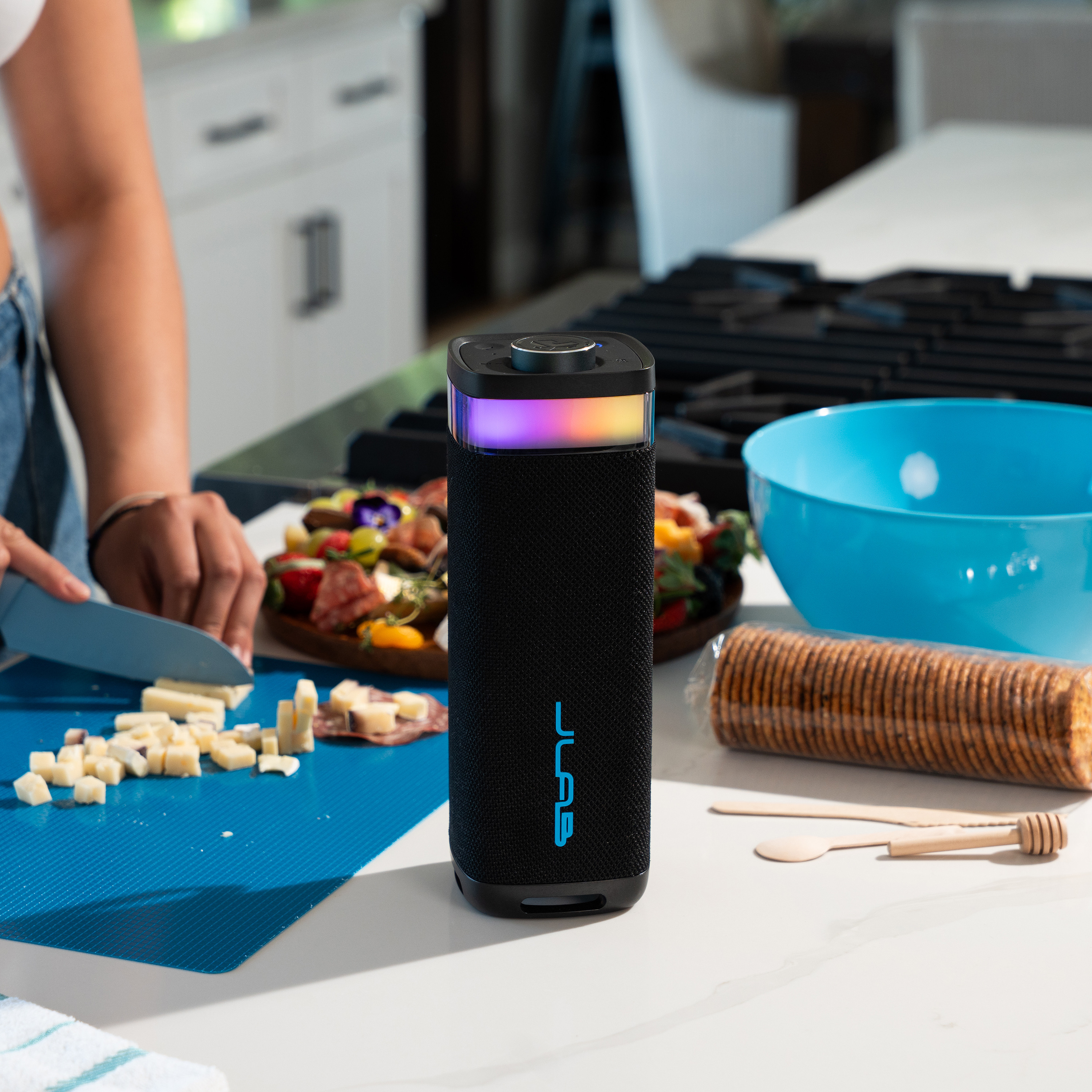 - Synchronisierung von bis zu 100 JLab Party-Lautsprechern