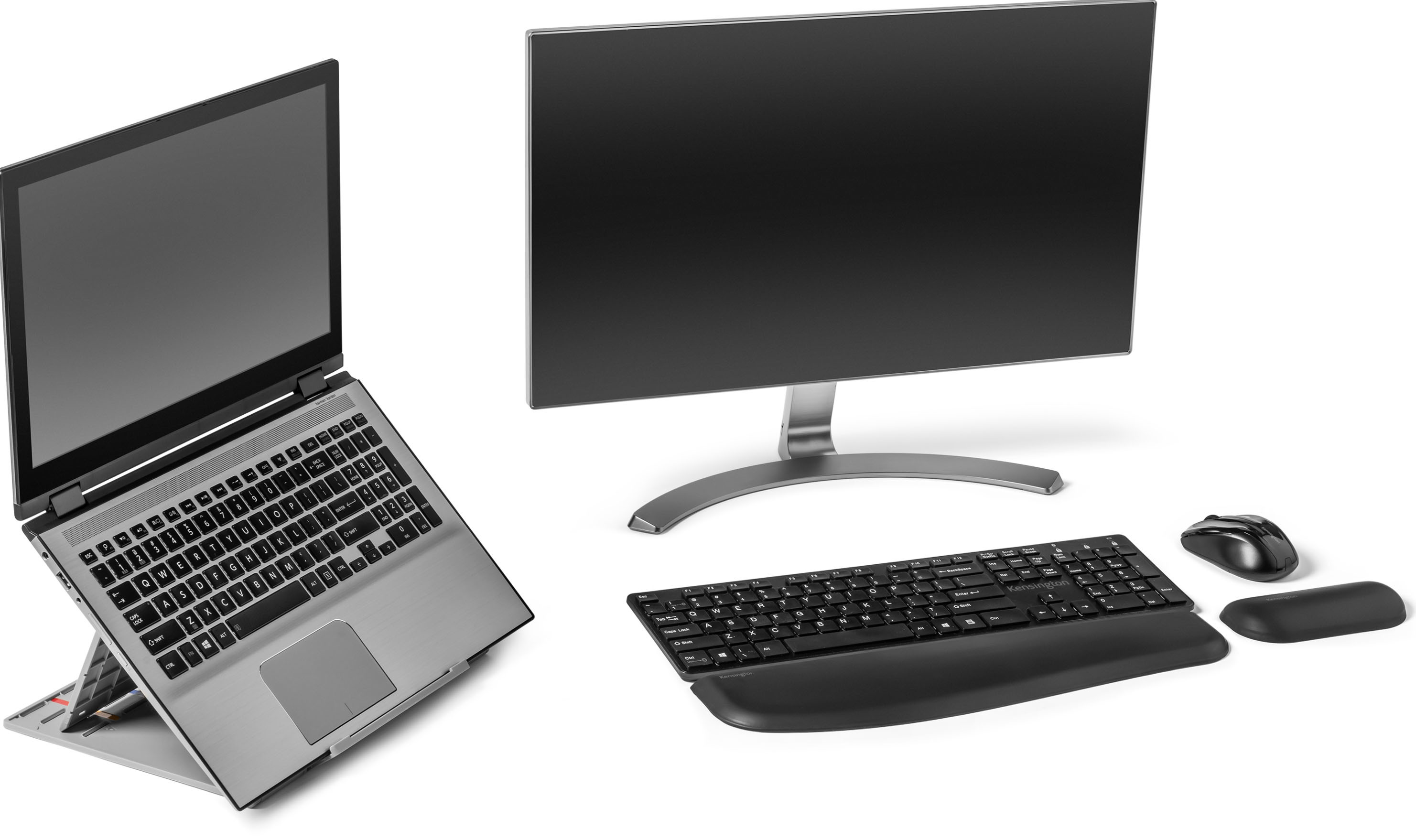 Kombinieren Sie die ergonomischen und technologischen Vorteile des höhenverstellbaren Kensington® SmartFit® Easy Riser™ Go 17" Laptopständers, der nicht nur für eine optimale Bildschirmhöhe sorgt, sondern auch für eine verbesserte Luftzirkulation für Ihren Laptop. Das elegante 2-in-1-Design ist höhen- und winkelverstellbar für eine gesunde Körperhaltung und dank der angenehmen Arbeitshöhe eine Entlastung für Nacken und Schultern. Ein zusätzlicher Vorteil ist das Ableiten der Wärme und damit die Kühlung der Laptopkomponenten. Die rutschfeste Fussmatte verhindert, dass der Ständer nach vorne rutscht, die gepolsterten Einsätze sorgen für einen sicheren Sitz Ihres Geräts und das schlanke, klappbare Design ist ideal für unterwegs. Verwendung mit einer externen Tastatur und Maus (separat erhältlich). Unterstützt 17“ Standard- und Gaming-Laptops.