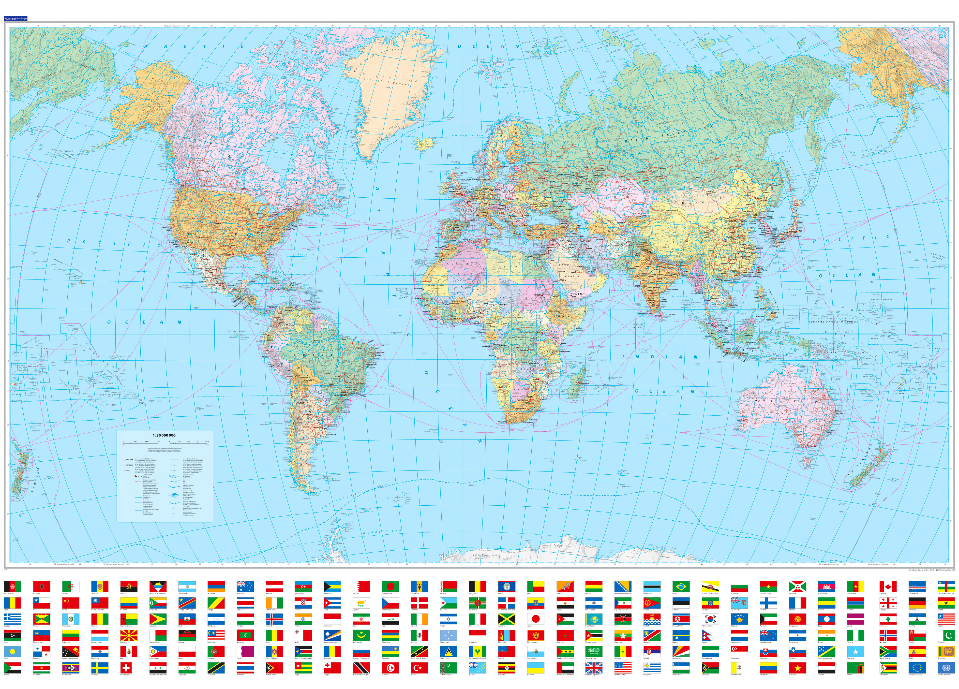 KÜMMERLY+FREY Plano-Weltkarte 140x99cm 63430123 p olitisch 1:30 Mio.